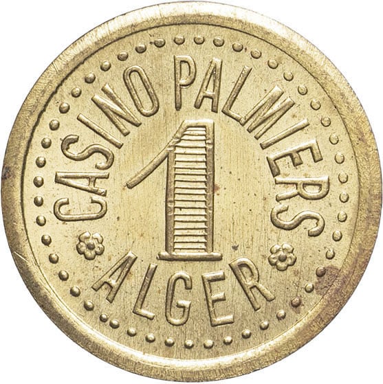 - ALGERIA IIIe République (1870-1940). Monnaie de nécessité, Casino Palmiers d’Alger, 1 [franc] ND.