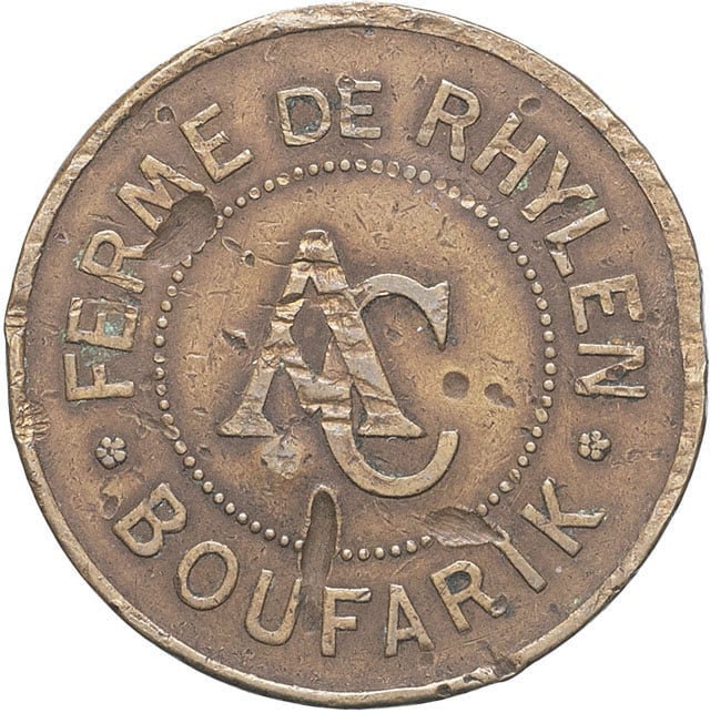 - ALGERIA IIIe République (1870-1940). Monnaie de nécessité, 1/2 [franc], ferme de Rhylen à Boufarik ND.