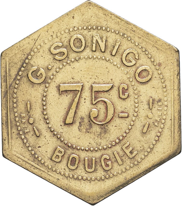 - ALGERIA IIIe République (1870-1940). Monnaie de nécessité, C. Sonigo à Bougie, 75 centimes ND, Paris (Katz).