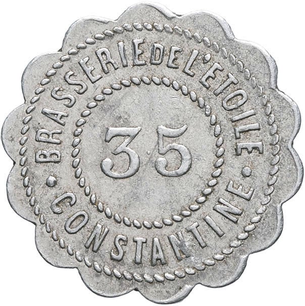 - ALGERIA IIIe République (1870-1940). Monnaie de nécessité, Brasserie de l’étoile à Constantine, 35 [centimes] ND.
