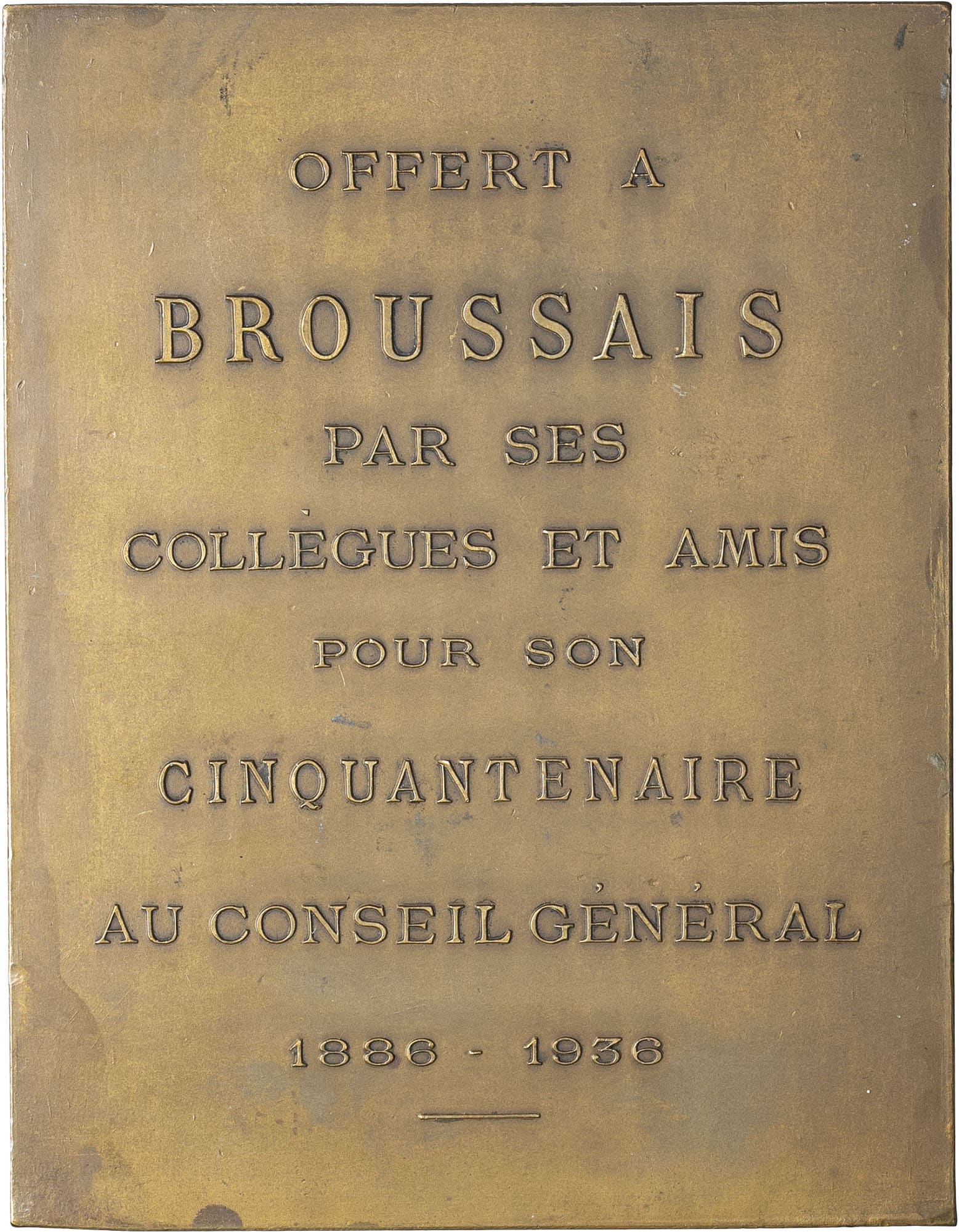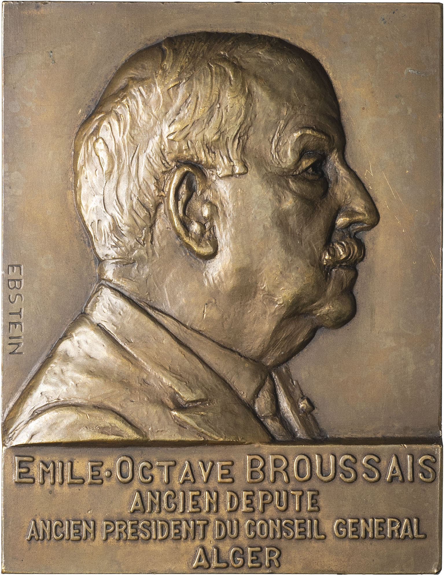 - ALGERIA IIIe République (1870-1940). Plaque, Émile Octave Broussais, député et président du Conseil général d’Alger, par Ebstein 1936, Paris.