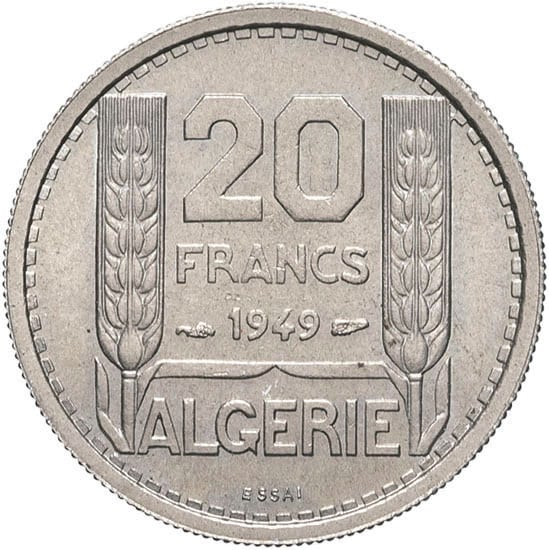 - ALGERIA IVe République (1947-1958). Essai de 20 francs 1949, Paris.