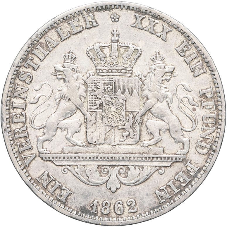 - GERMANY Bavière, Maximilien II (1848-1864). Thaler 1862, Munich.