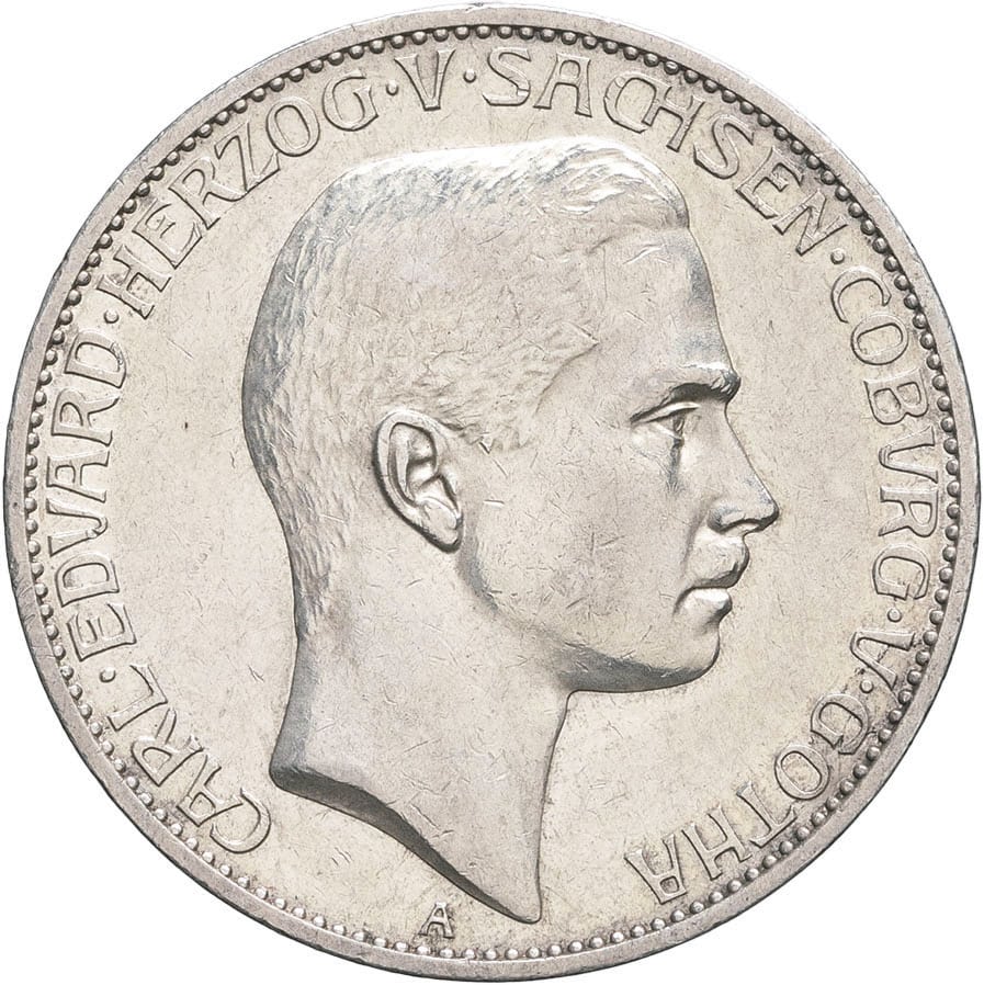 - GERMANY Saxe-Coburg-Gotha, Charles-Édouard (1900-1918). 5 (fünf) mark 1907, A, Berlin.