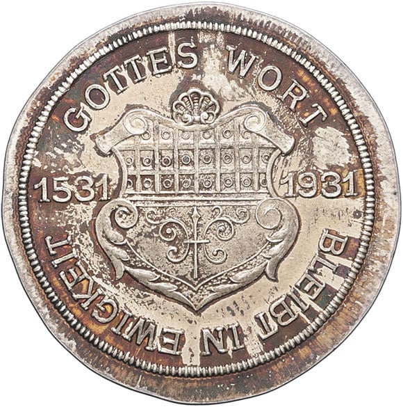 - GERMANY Wurtemberg, cité d’Ulm. Médaille, 400e anniversaire de la Réforme à Ulm, par F. Miller 1931.