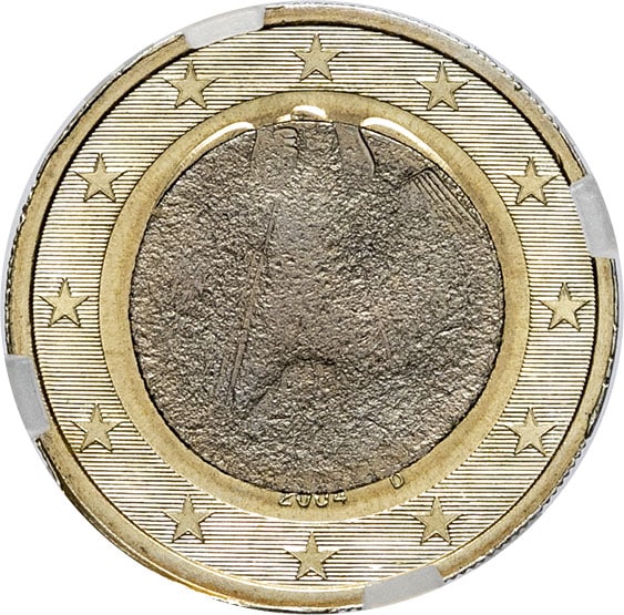- GERMANY République fédérale (depuis 1949). 1 euro, fautée : cœur avec couches décollées 2004, D, Stuttgart.