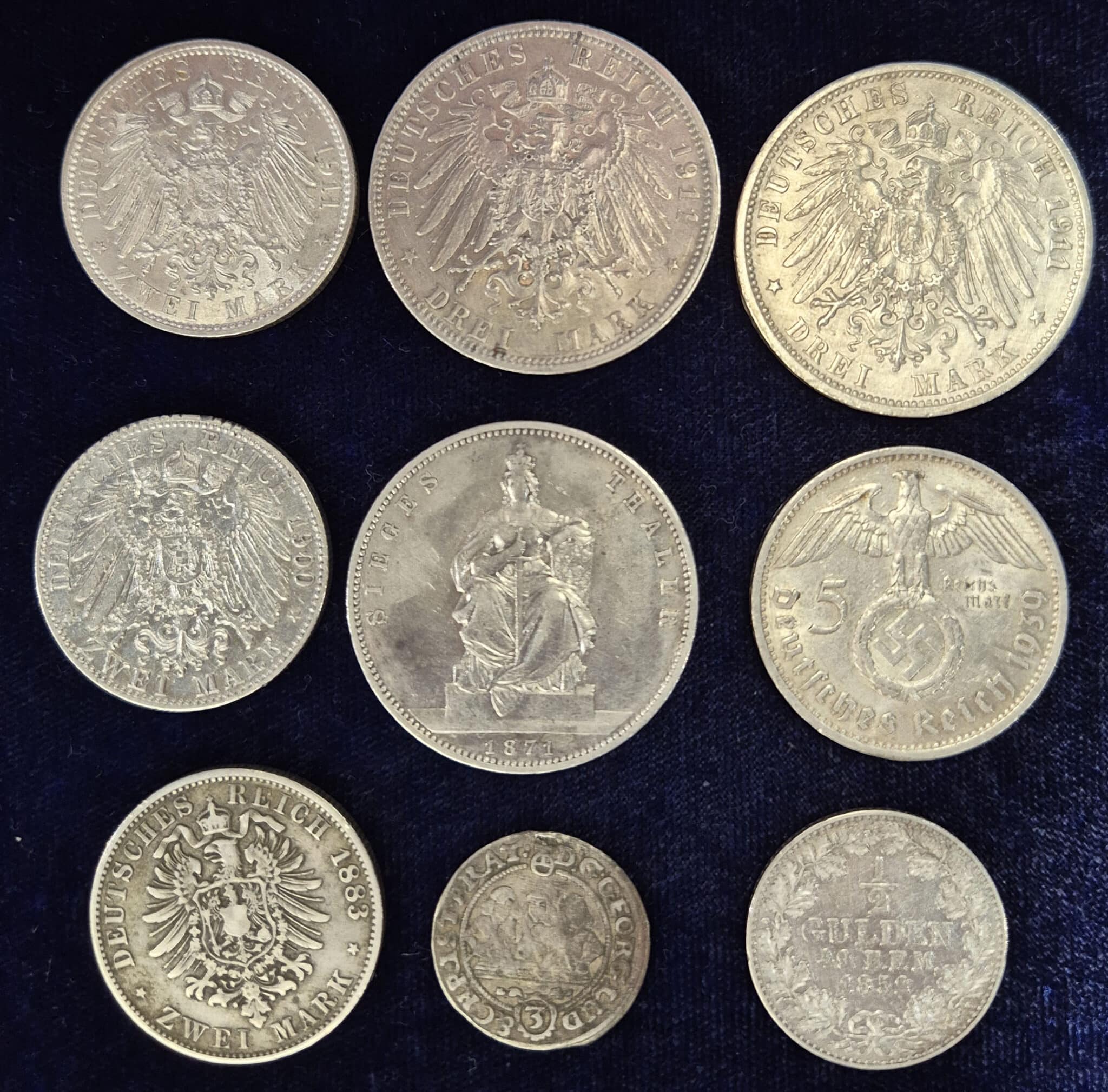 - GERMANY Lot. Lot de 9 monnaies en argent.