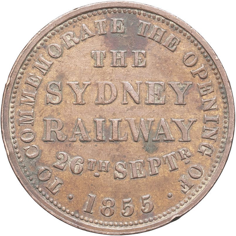 - AUSTRALIA Victoria (1837-1901). Jeton au module d’un penny, Hanks et Lloyd à Sydney, ouverture de la ligne de chemin de fer de Sydney 1855.