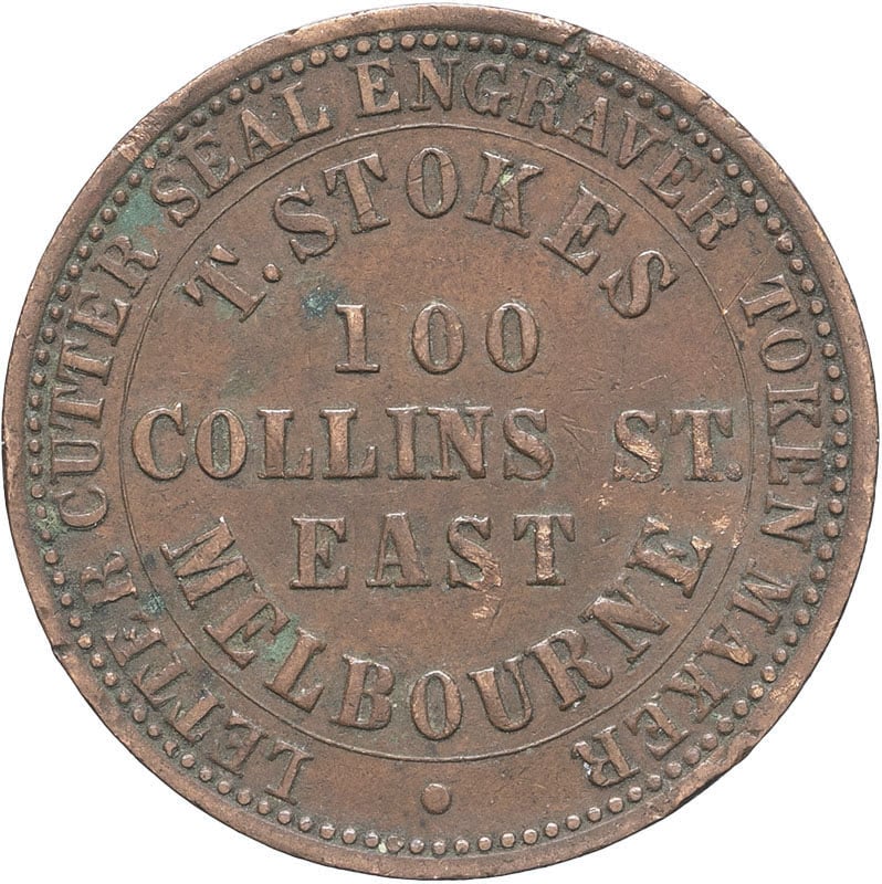 - AUSTRALIA Victoria (1837-1901). Jeton au module d’un penny, T. Stokes à Melbourne 1862, Melbourne.