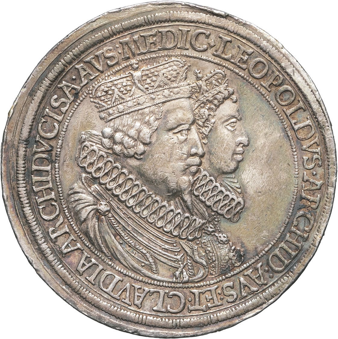 Av. .LEOPOLDVS. ARCHID: AVS: ET. CLAVDIA. ARCHIDVCISA. AVS: MEDIC. Bustes accolés, couronnés et cuirassés, à droite.