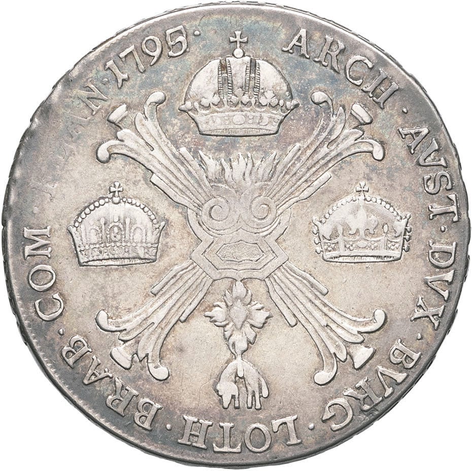 - AUSTRIA François II (1792-1835). Thaler aux couronnes (Kronenthaler) 1795, H, Günzburg.
