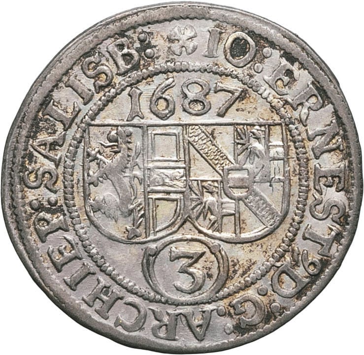 - AUSTRIA Salzbourg (évêché de), Maximilien Gandolph (1668-1687). 3 kreuzer 1687.