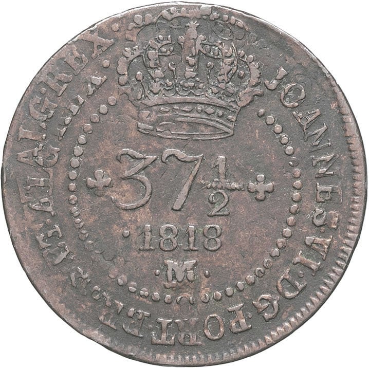 - BRAZIL Jean VI (1799-1826). 37 1/2 réis 1818, M, Minas Gerais.