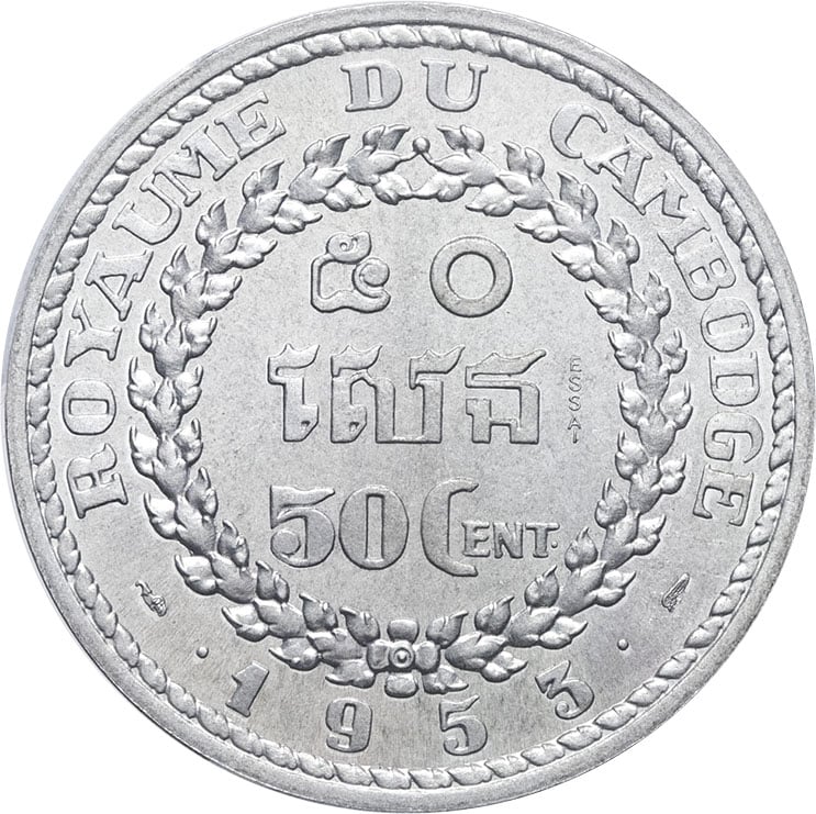- CAMBODIA Norodom Sihanouk, roi (1941-1955). Essai de 50 cents 1953, Paris.