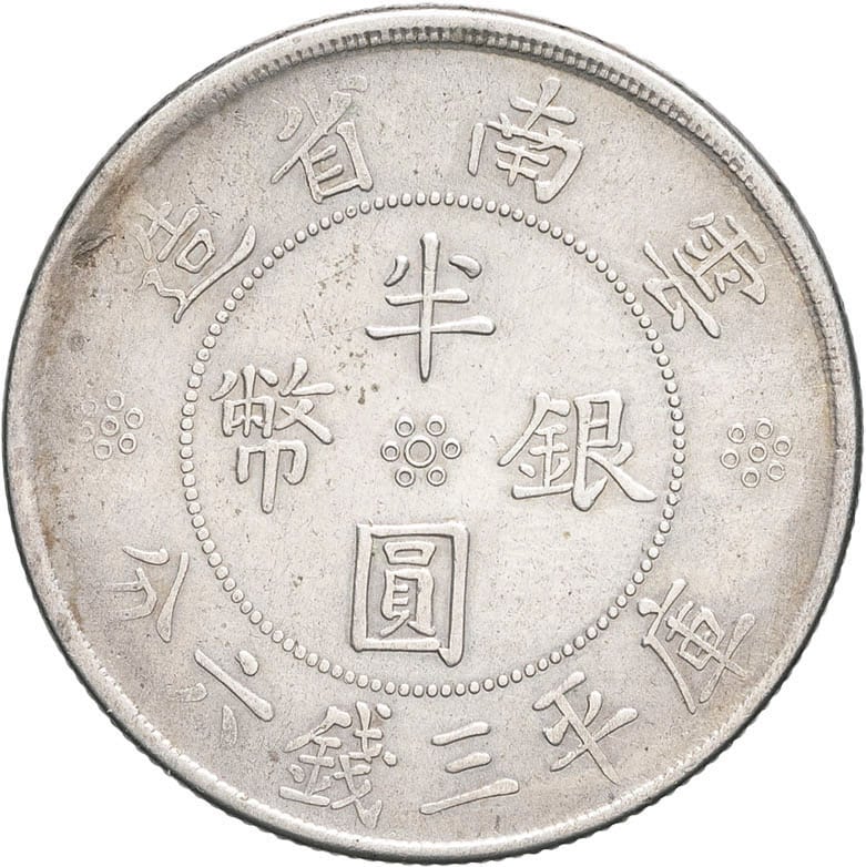 - CHINA République de Chine, province de Yunnan. 3 mace 6 candareens An 21 (1932), Kunming.