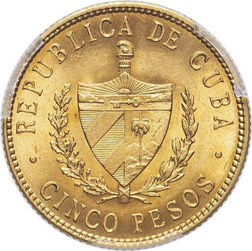 - République de Cuba (1902-1959). 5 pesos 1915, Philadelphie.