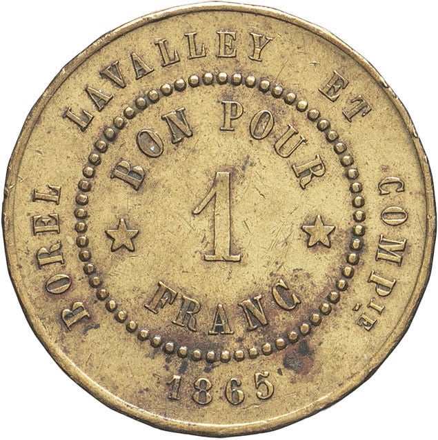 Rv. BOREL LAVALLEY ET COMPie. Au centre : BON POUR / * 1 * / FRANC et à l’exergue (date).