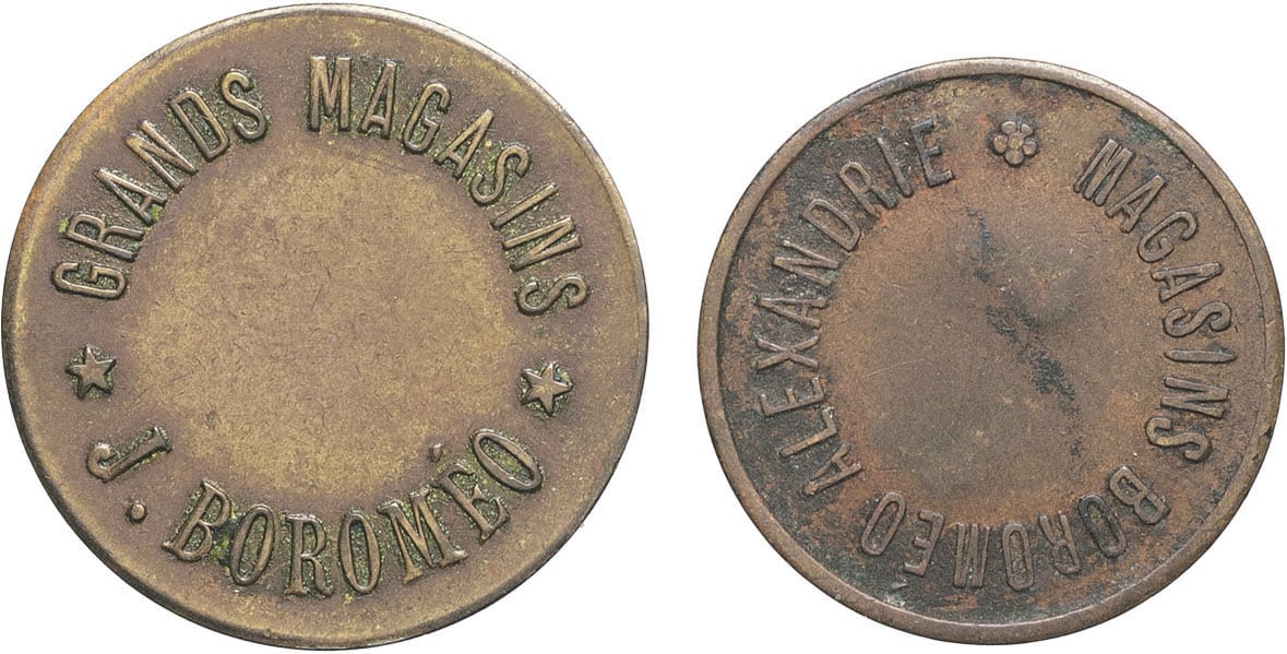 - EGYPT IIIe République (1870-1940). Lot de 2 jetons, grands magasins Boroméo [à Alexandrie] ND.