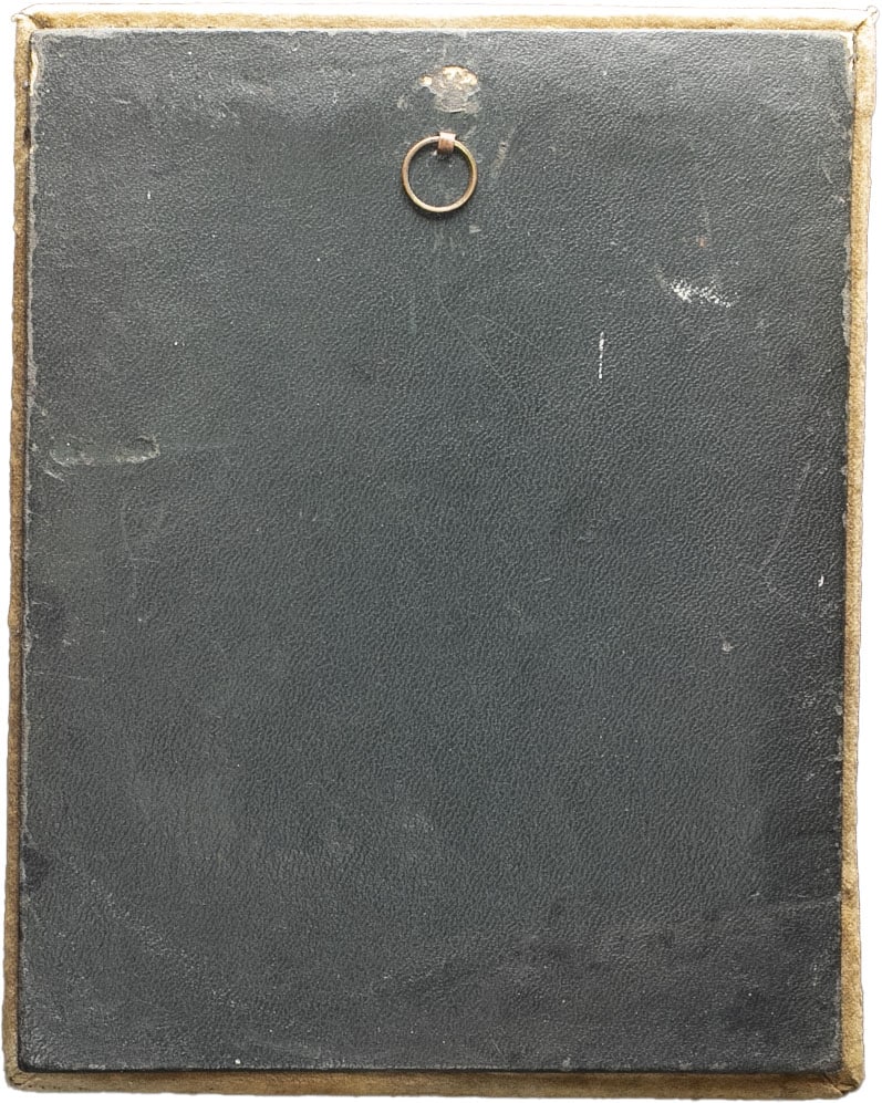 Fixée sur une plaque de bois recouverte de velours. Superbe.