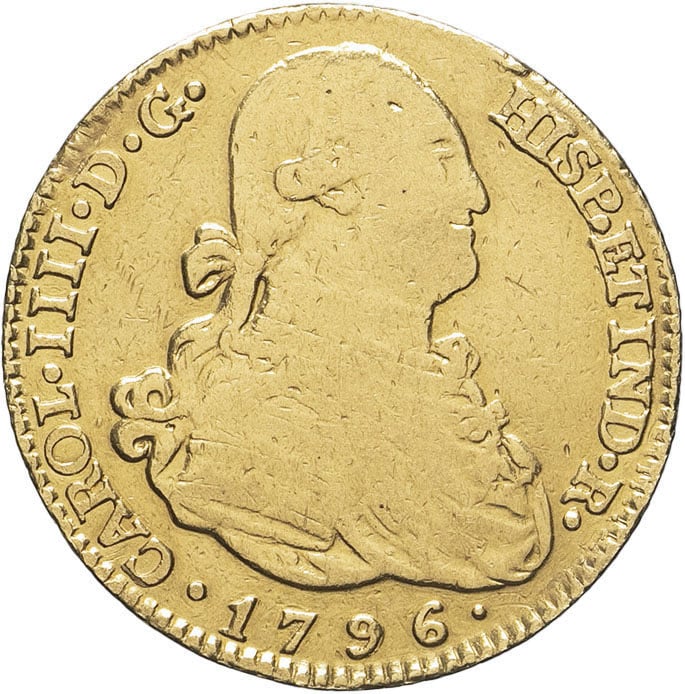 Av. CAROL. IIII. D. G. - HISP. ET. IND. R.. Buste cuirassé à droite, au-dessous (date).