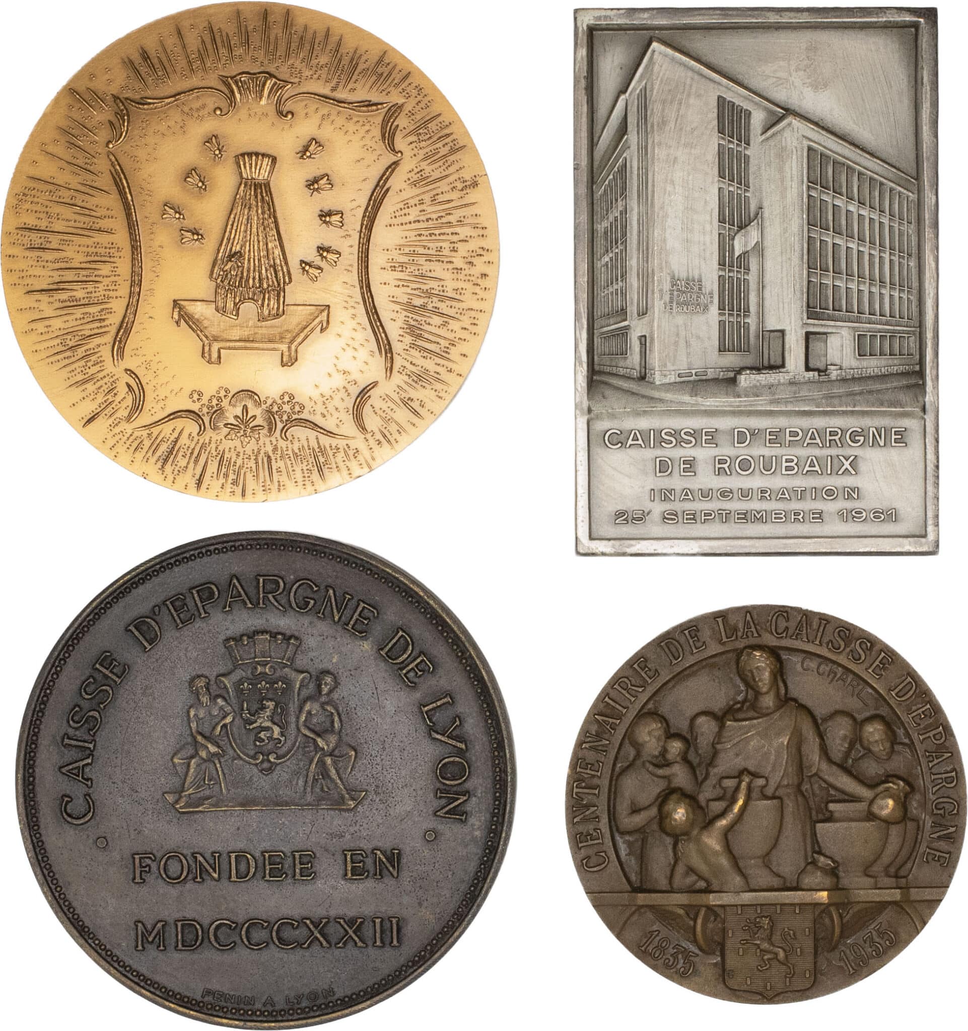 - MÉDAILLES - Caisses d’épargne. Lot de 4 médailles de Caisse d’épargne 1935 à 1972.