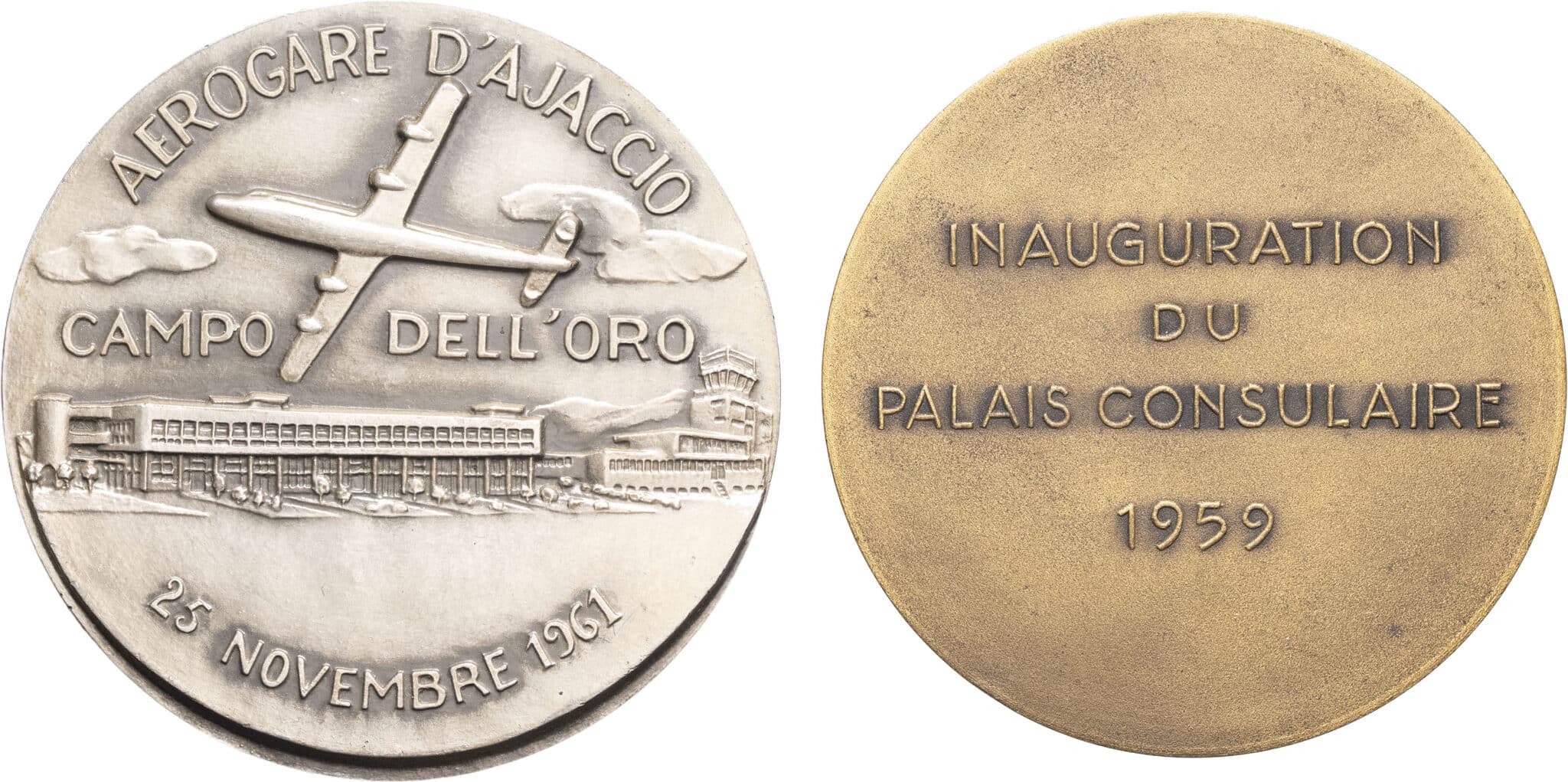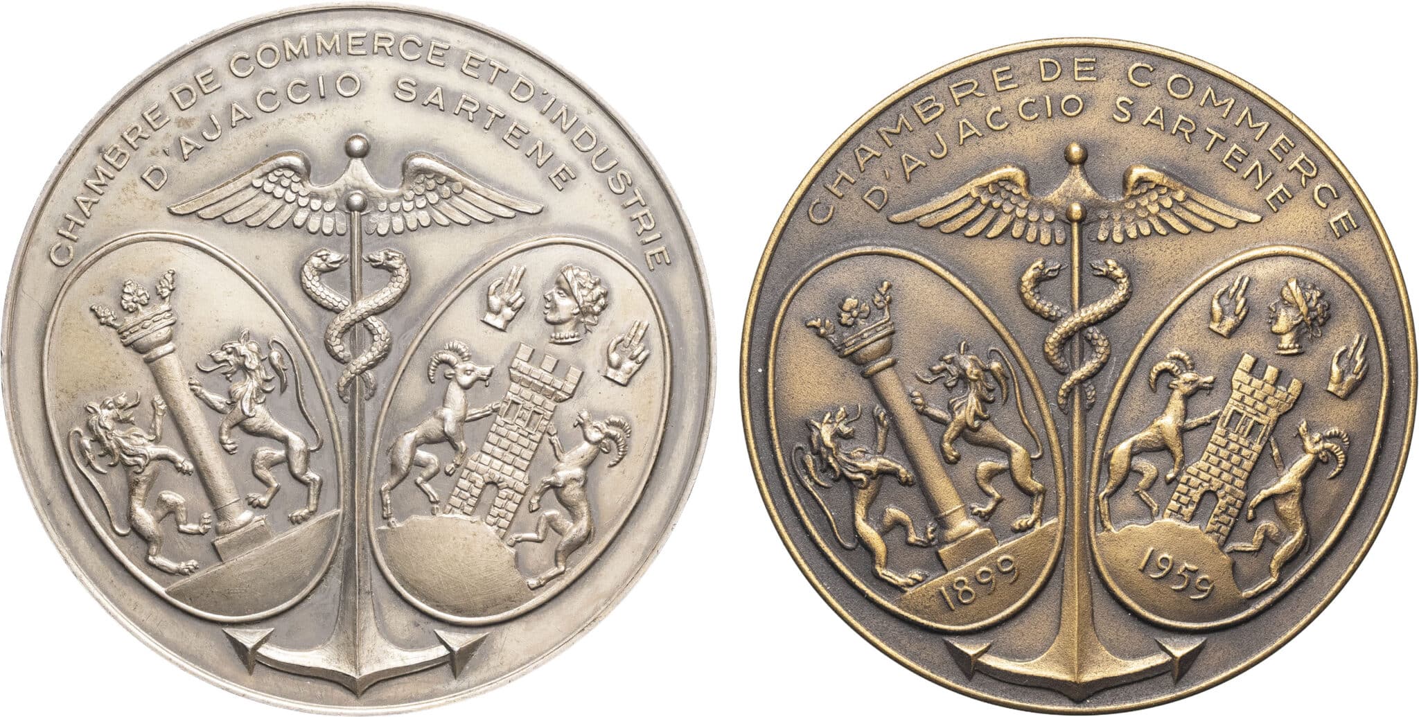 - MÉDAILLES - Chambres de commerce. Lot de deux médailles, Chambre de Commerce d’Ajaccio et Sartène en Corse 1959 et 1961, Paris.