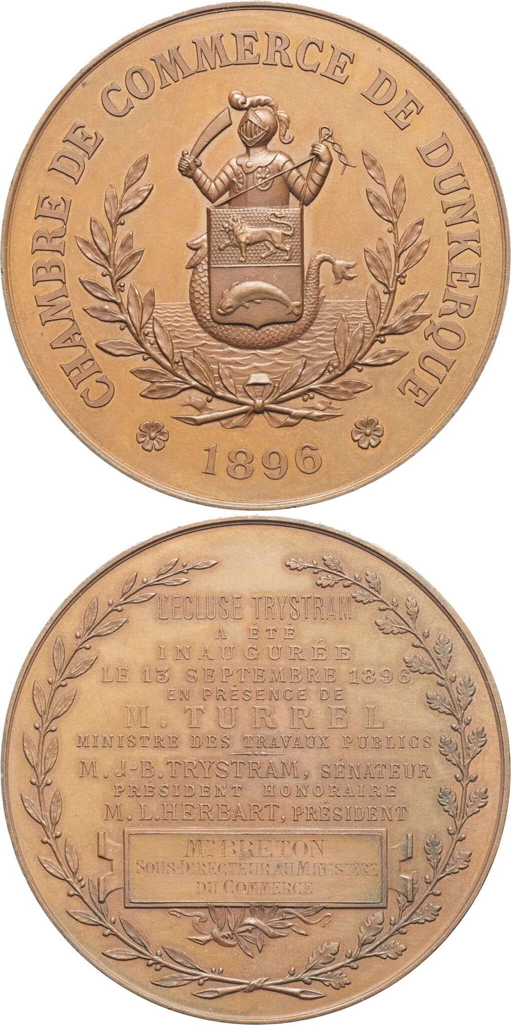 - MÉDAILLES - Chambres de commerce. Médaille, Chambre de commerce de Dunkerque, inauguration de l’écluse Trystram 1896.