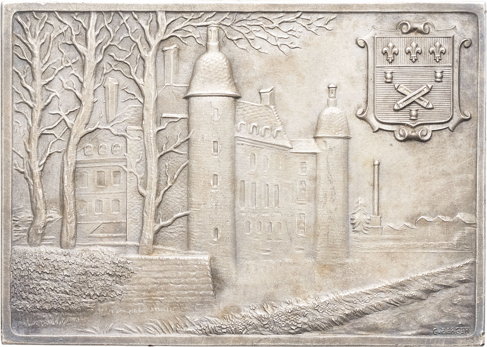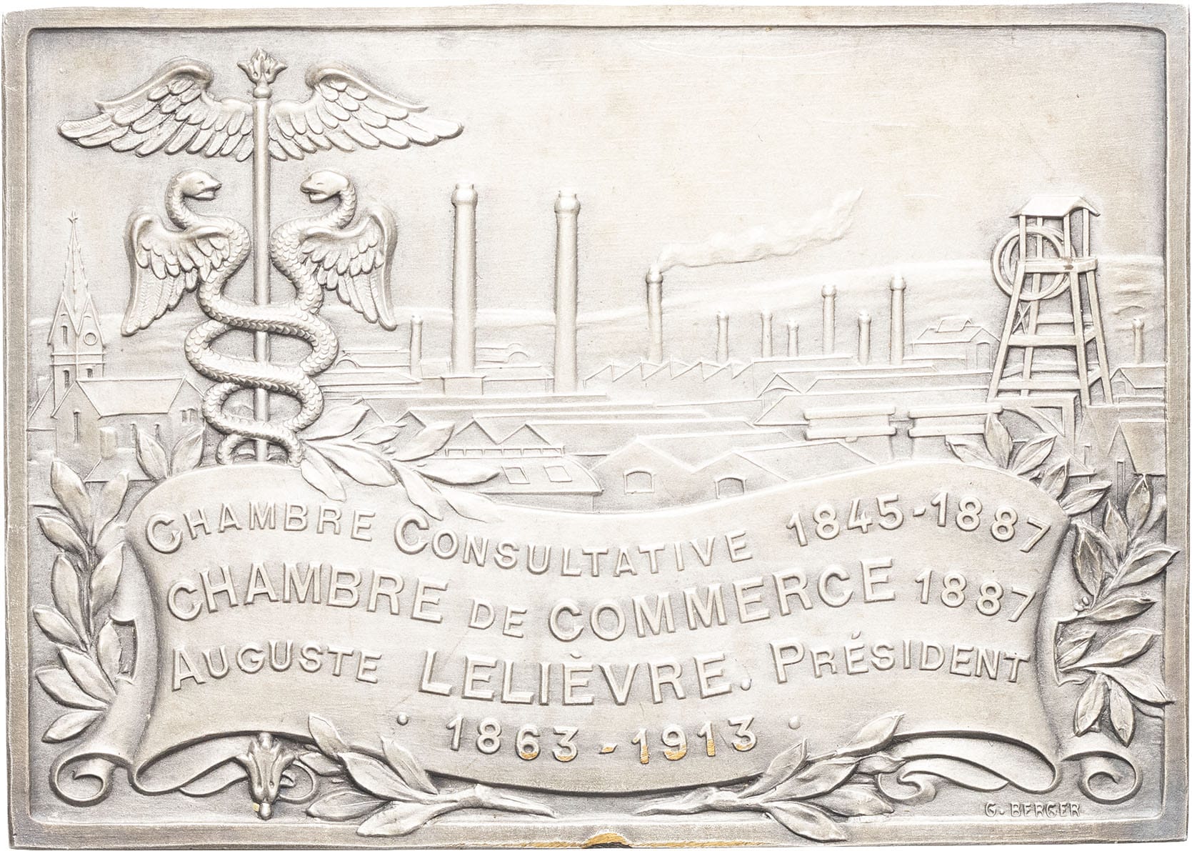 - MÉDAILLES - Chambres de commerce. Plaque, Chambre de commerce de Flers, cinquantenaire de la présidence d’Auguste Lelièvre, par G. Berger 1913, Paris.