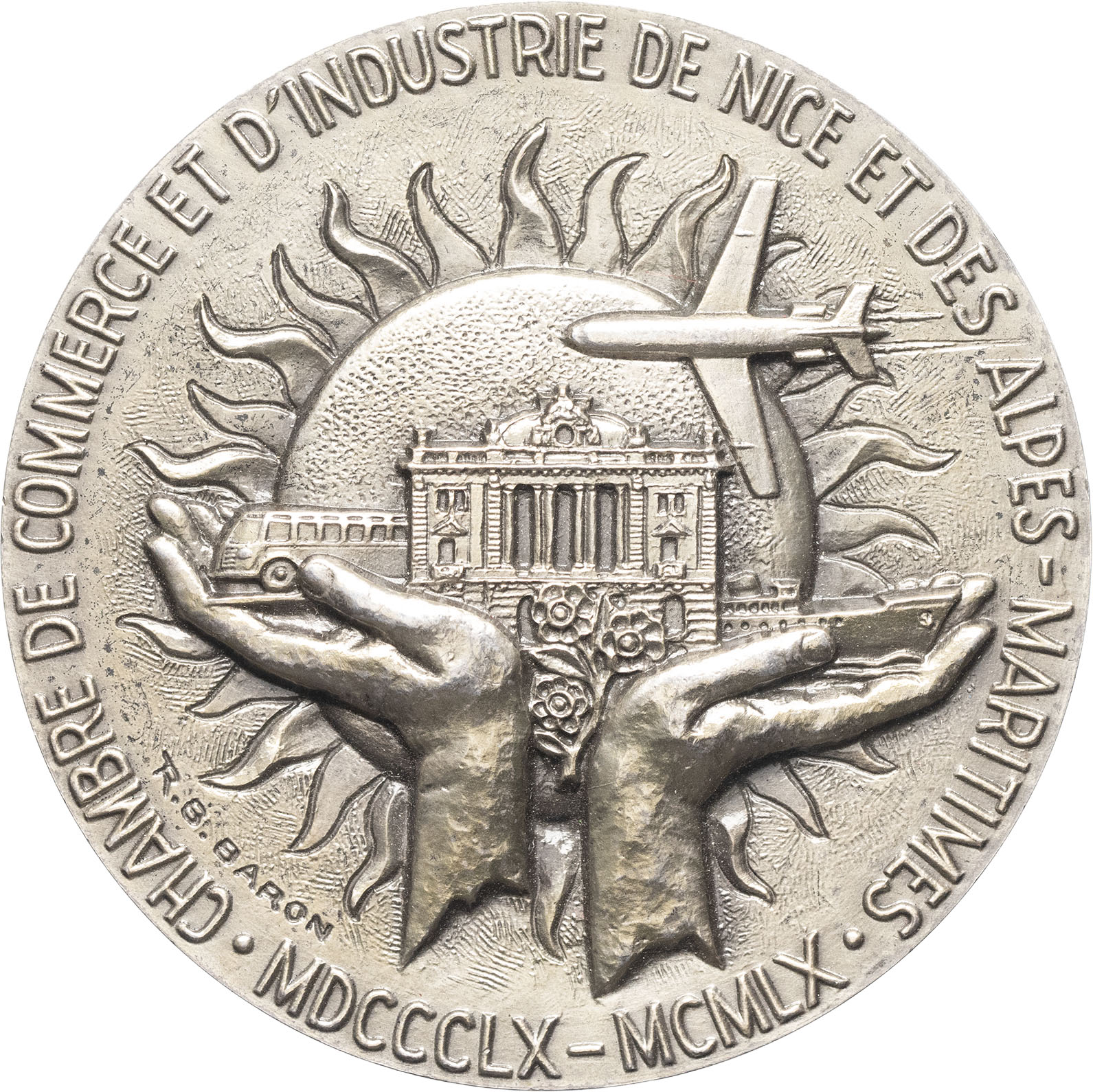 - MÉDAILLES - Chambres de commerce. Médaille, centenaire de la Chambre de commerce et d’industrie de Nice et des Alpes-Maritimes, par R.B. Baron 1960, Paris.