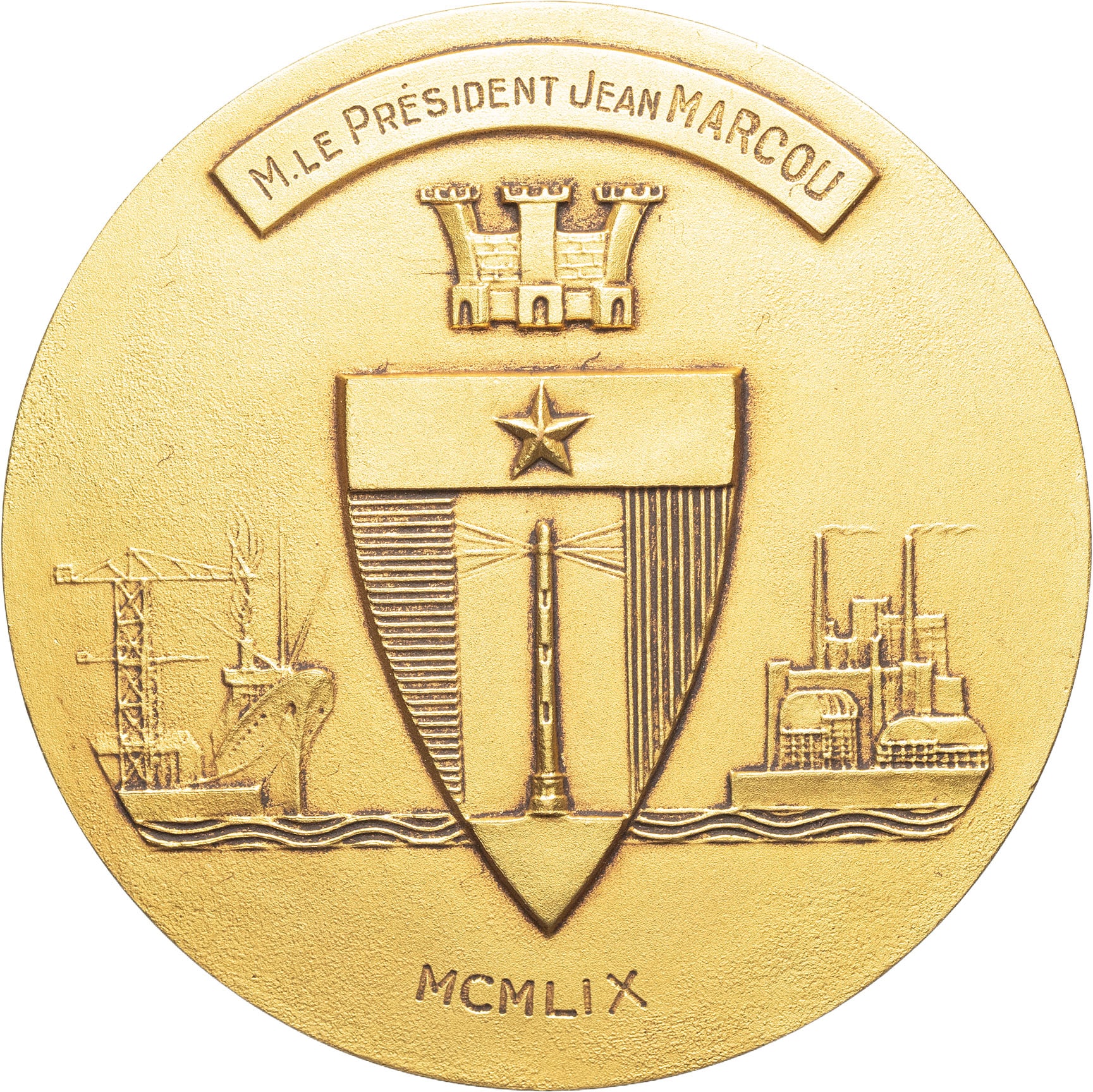 Attribution gravée au revers : M. LE PRESIDENT JEAN MARCOU / MCMLIX. Provient d’une vente sur offres iNumis 51 du 9 mars 2021, n° 1025.