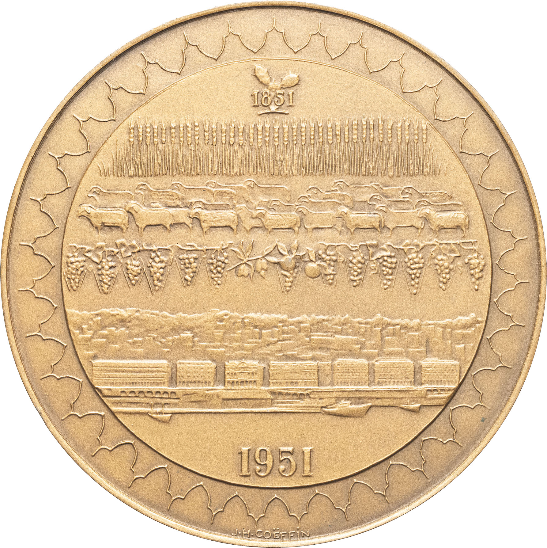 MÉDAILLES - Algérie. Médaille, centenaire de la Banque de l’Algérie et de la Tunisie, par J. H. Coëffin 1951, Paris.