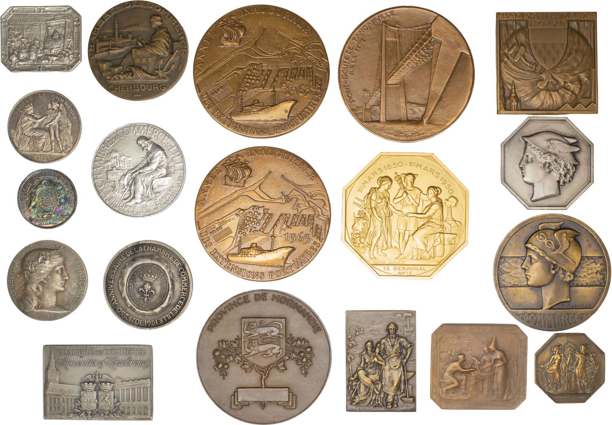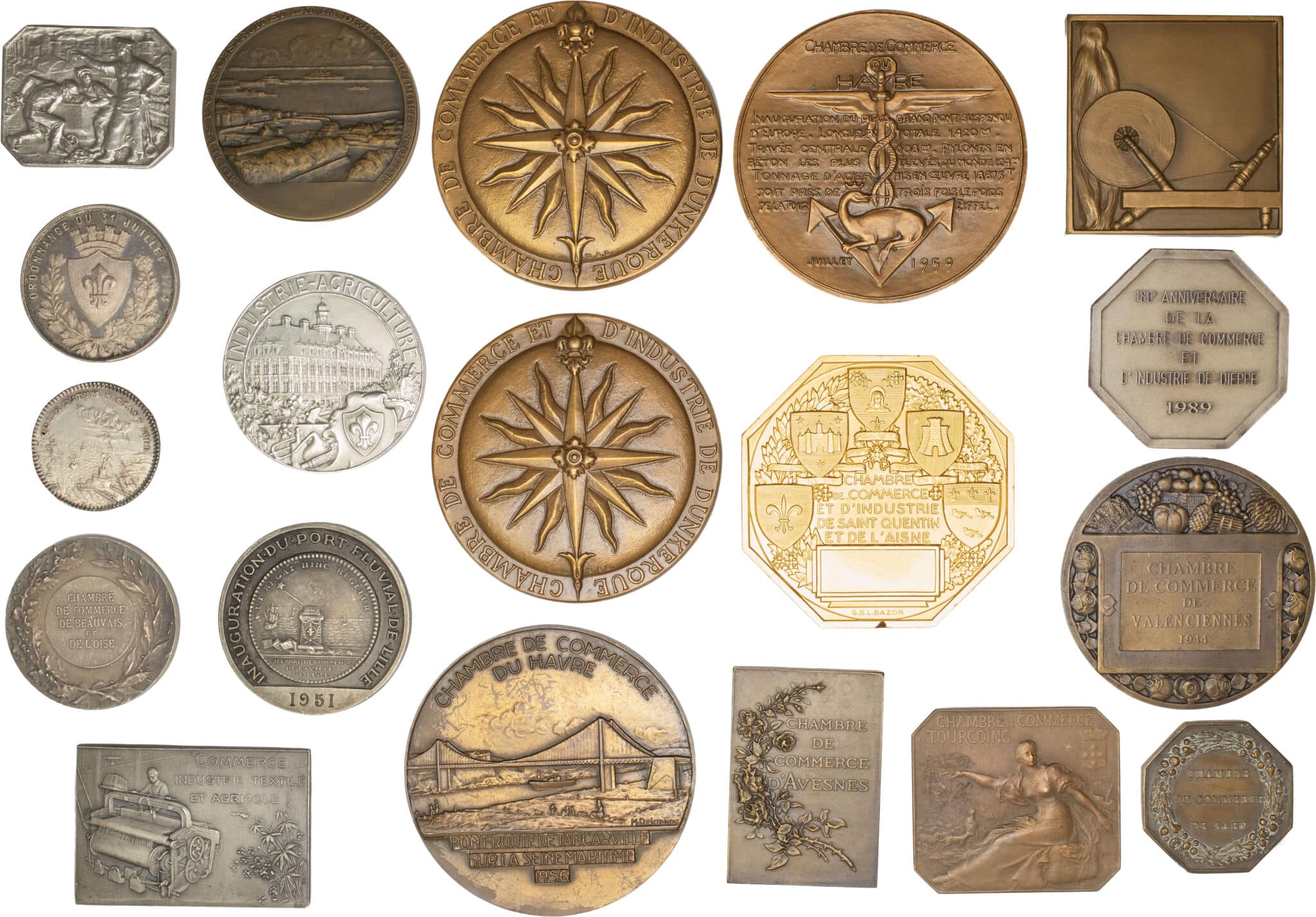 - MÉDAILLES - Chambres de commerce. Lot de 19 médailles, Chambres de commerce du nord de la France ND.