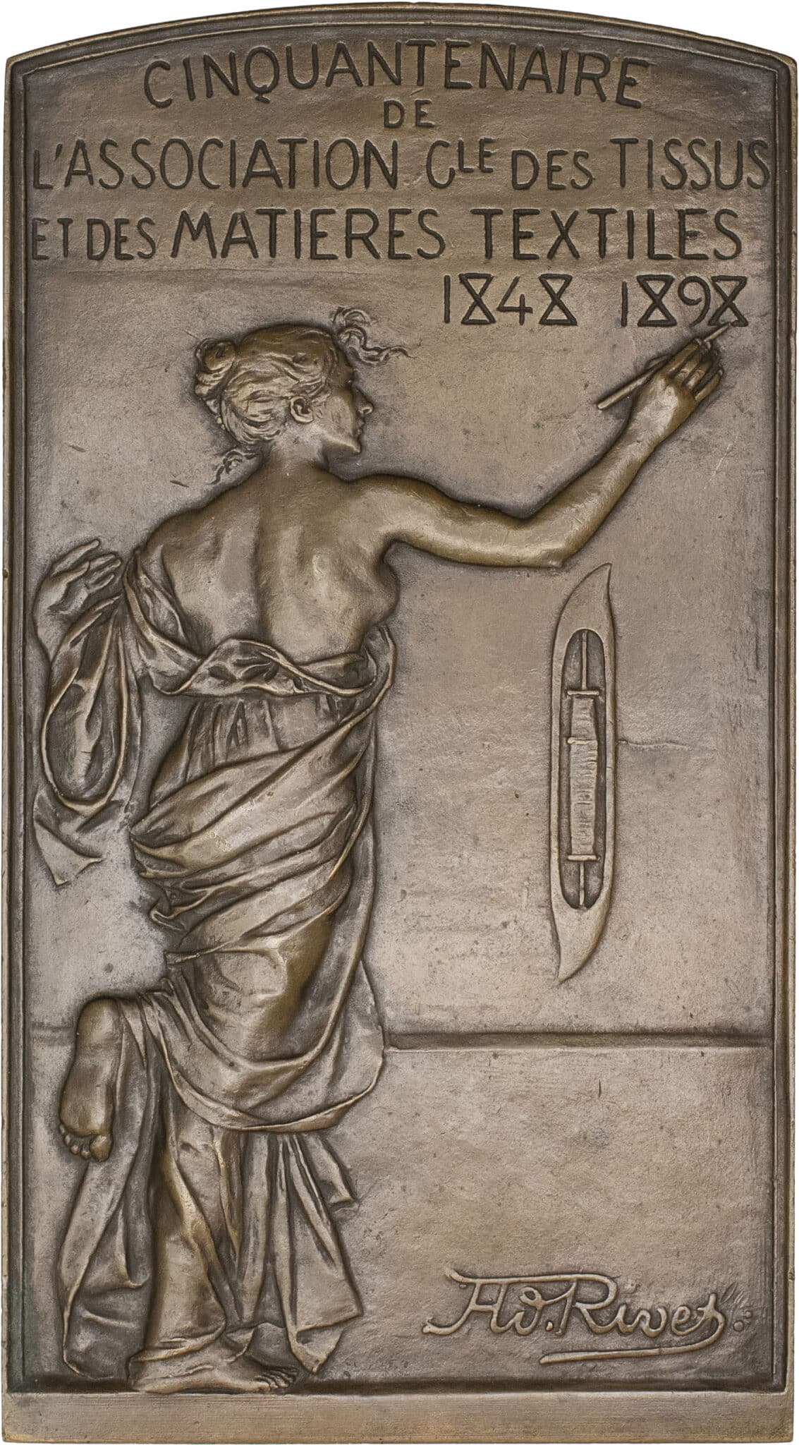 - MÉDAILLES - Économie et Industrie. Plaque, cinquantenaire de l’Association générale des tissus et matières textiles, par Ad. Rivet 1898.