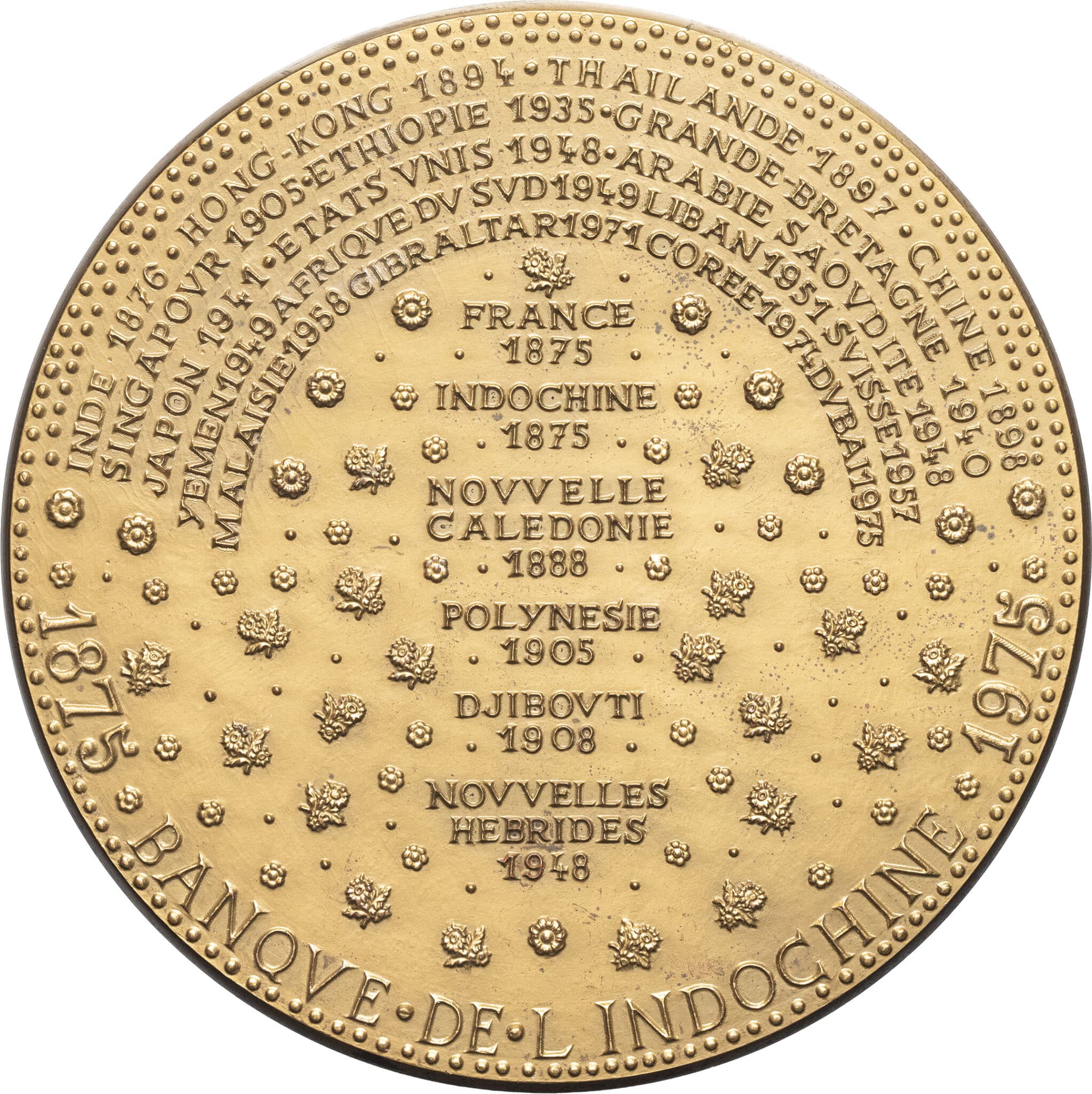 - MÉDAILLES - Économie et Industrie. Médaille, centenaire de la Banque de l’Indochine, par A. de Jaeger 1974, Paris.