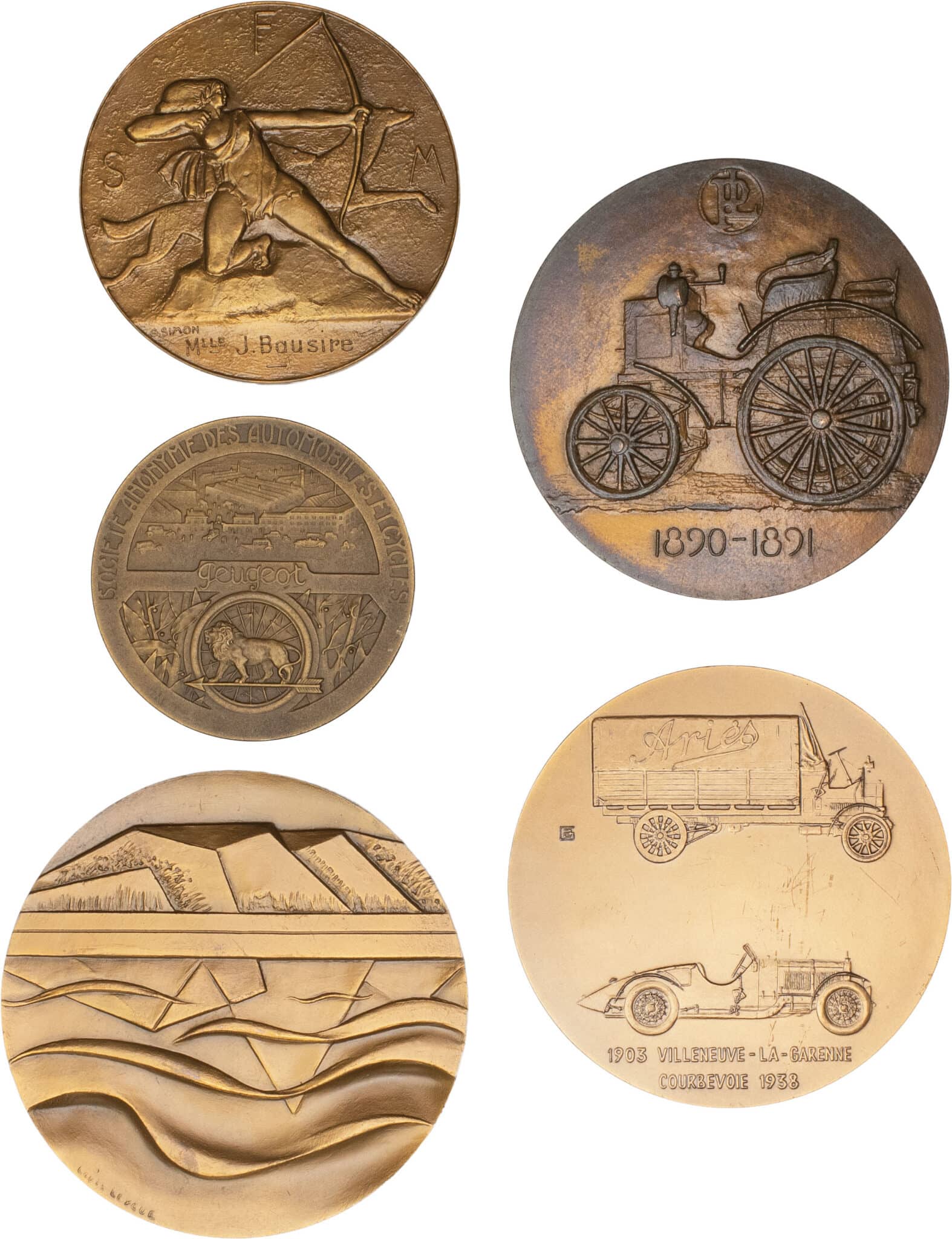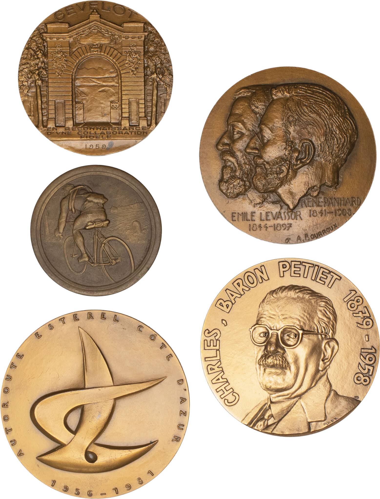 Société anonyme des automobiles et cycles Peugeot par Baudichon - société SFM Gevelot - René Panhard et Emile Levassor par Bourroux - Charles baron Petiet par Ader - Autoroute Esterel côte d’Azur 1981 par Leygue