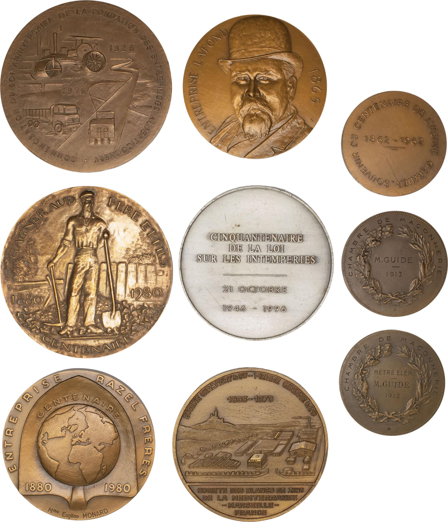 centenaire de l’entreprise Lafond 1965 par Lesot - centenaire de l’entreprise Razel 1980 par Baron - 75 ans de la Société des blancs de zinc de la Méditerranée 1970 par Quentric - 50 ans des entreprises Albert Cochery 1976 par Bouyon - 50 ans de la loi sur les intempéries 1996 - centenaire de Gagneraud père et fils 1980 par Ammann - centenaire de l’usine Garnier 1962 par Corbin - chambre de maçonnerie par Dubois et Chabaud (2)