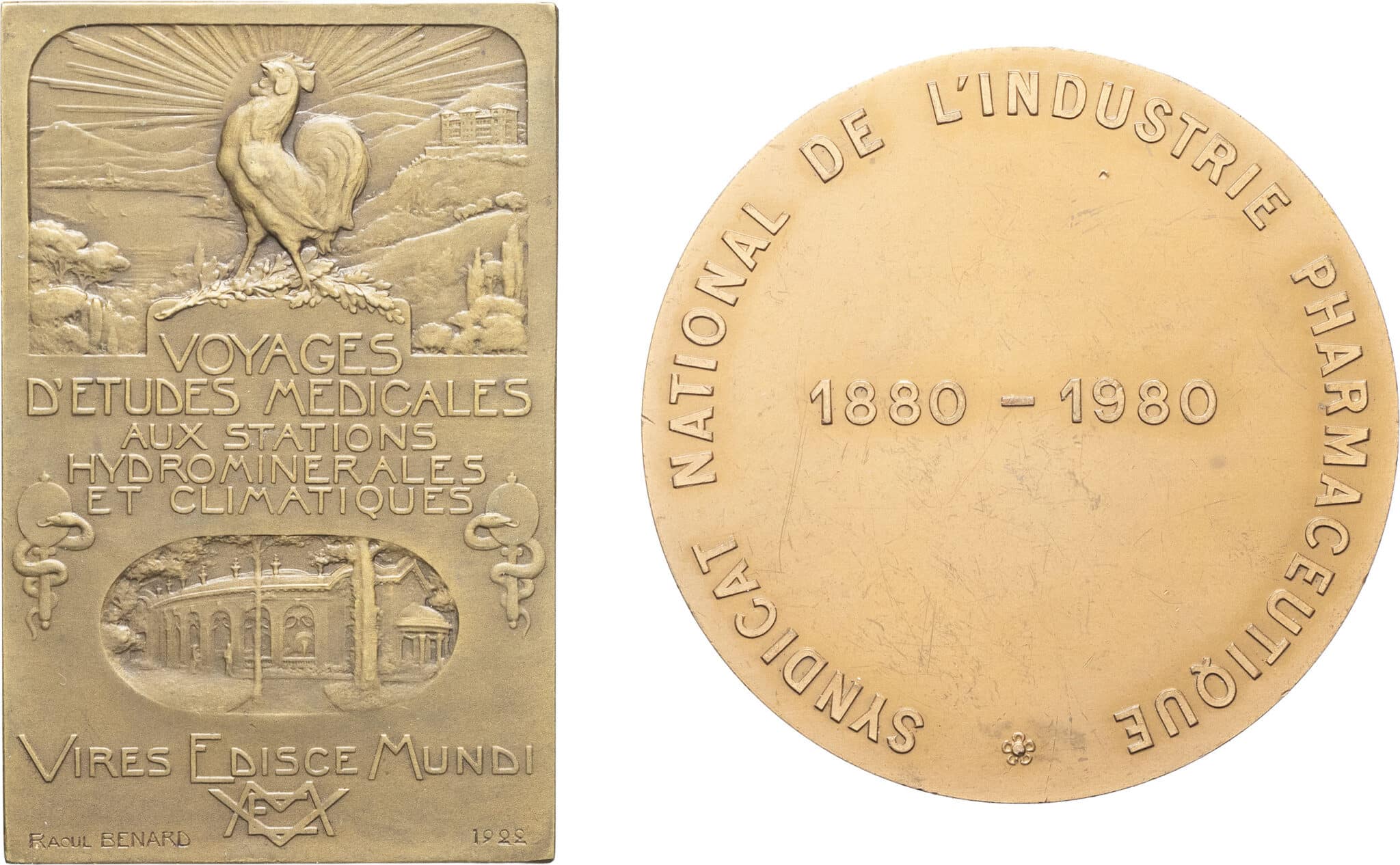 - MÉDAILLES - Économie et Industrie. Lot de 2 médailles relatives au thermalisme et à la pharmacie.