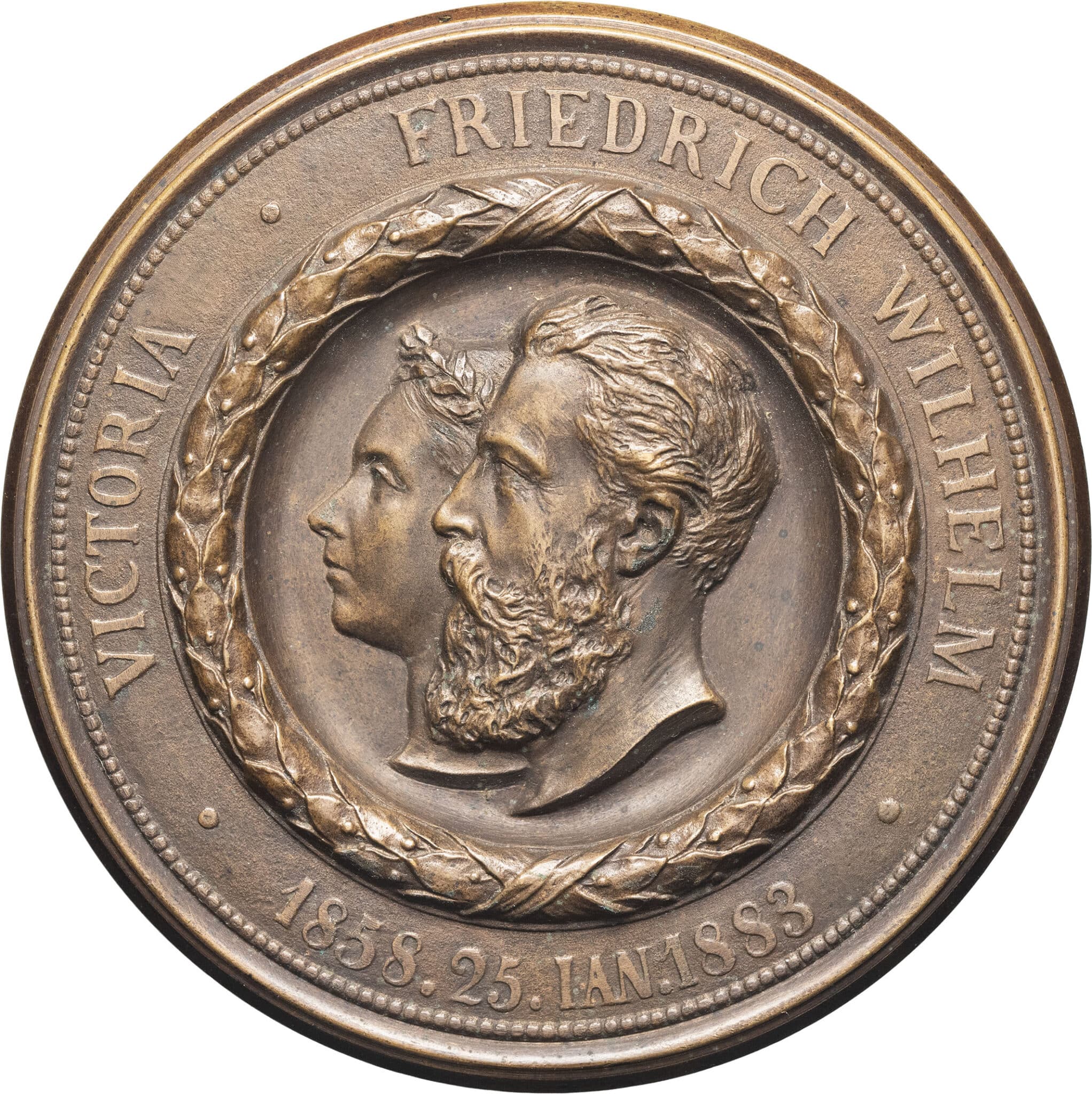 - GERMANY MÉDAILLES - Souverains européens. , Prusse. Médaille, noces d’argent de Frédéric III et Victoria du Royaume-Uni, par G. Eberlein 1883.