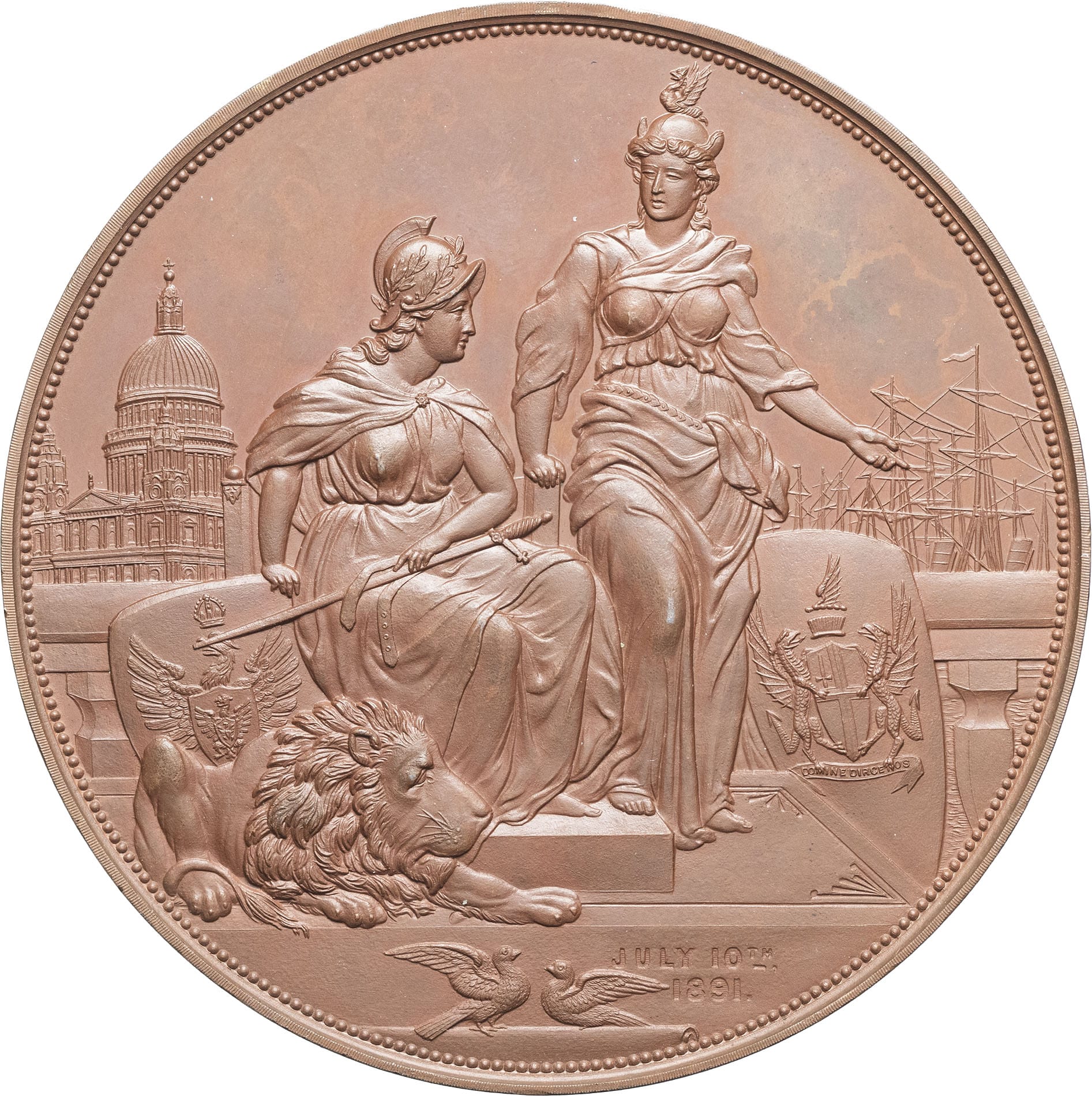 - GERMANY MÉDAILLES - Souverains européens. , Prusse. Visite de l’empereur Guillaume II et Victoria à Londres, par Elkington 1891.