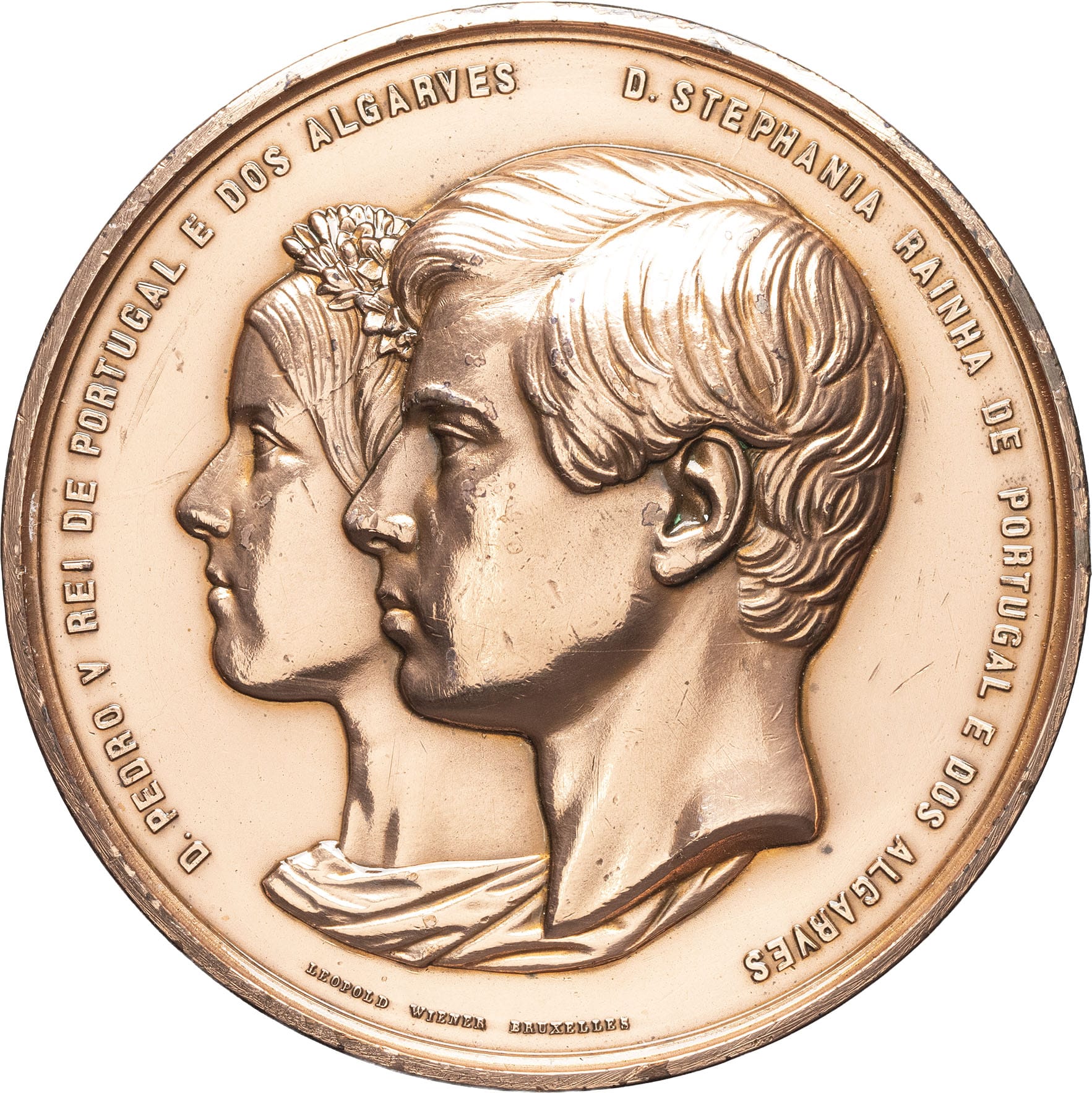 MÉDAILLES - Souverains européens. . Médaille, mariage par procuration à Berlin de Stéphanie de Hohenzollern et Pierre V du Portugal, par L. Wiener 1858, Bruxelles.
