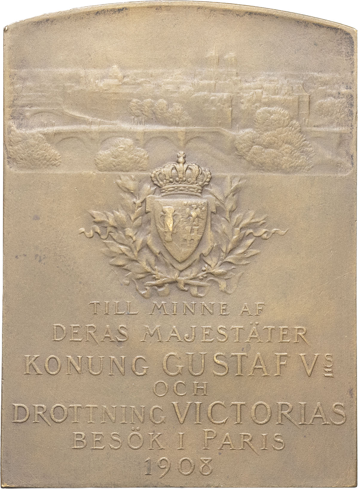 MÉDAILLES - Souverains européens. . Médaille, visite à Paris du roi Gustave et de la reine Victoria, par Svante Nilsson 1908, Paris (Janvier et Berchot).