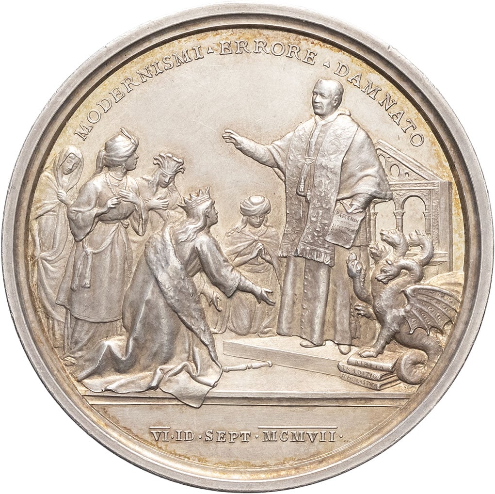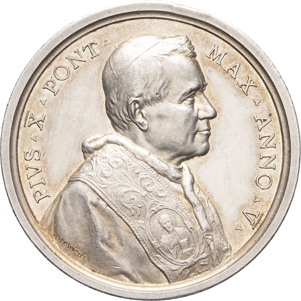 - ITALY MÉDAILLES - Souverains européens. VATICAN, Pie X. Médaille annuelle, encyclique contre le modernisme, par Bianchi An V (1908), Rome.