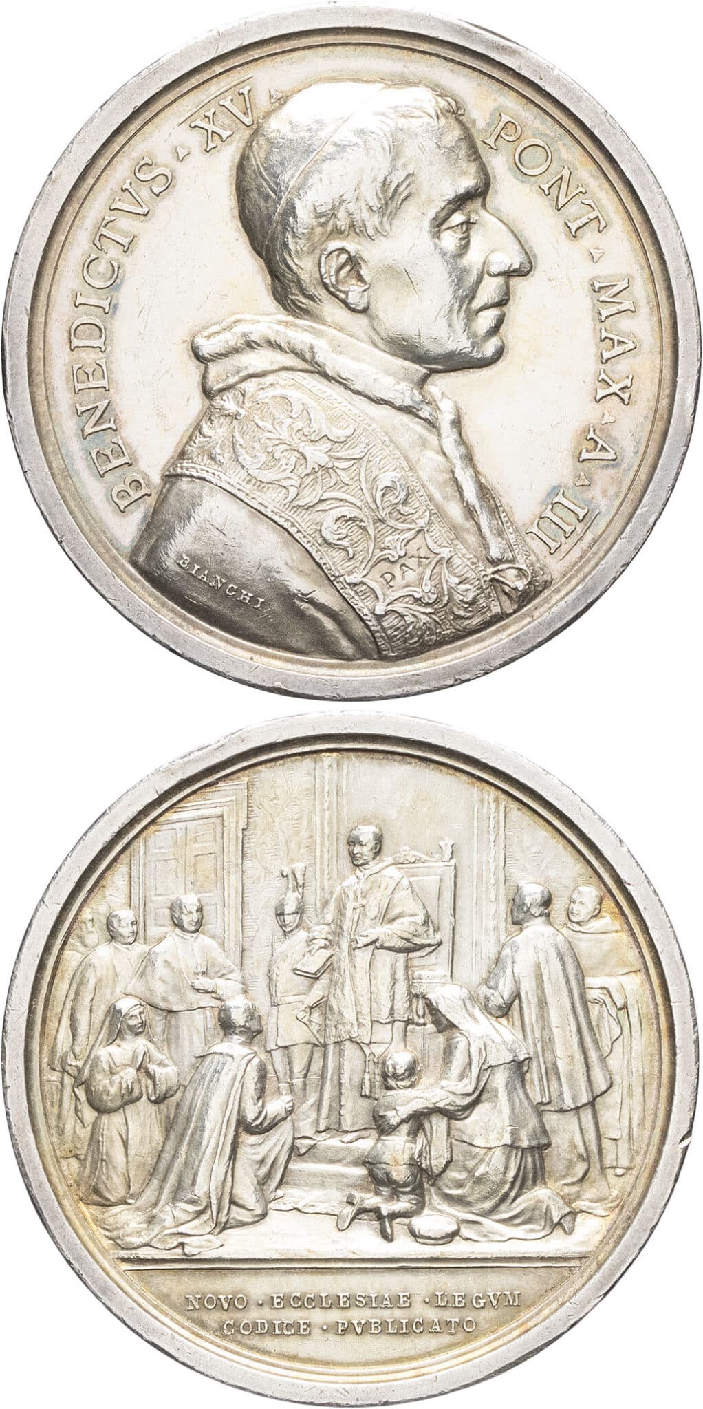 - ITALY MÉDAILLES - Souverains européens. VATICAN, Benoît XV. Médaille annuelle, code de droit canonique, par Bianchi An III (1917), Rome.