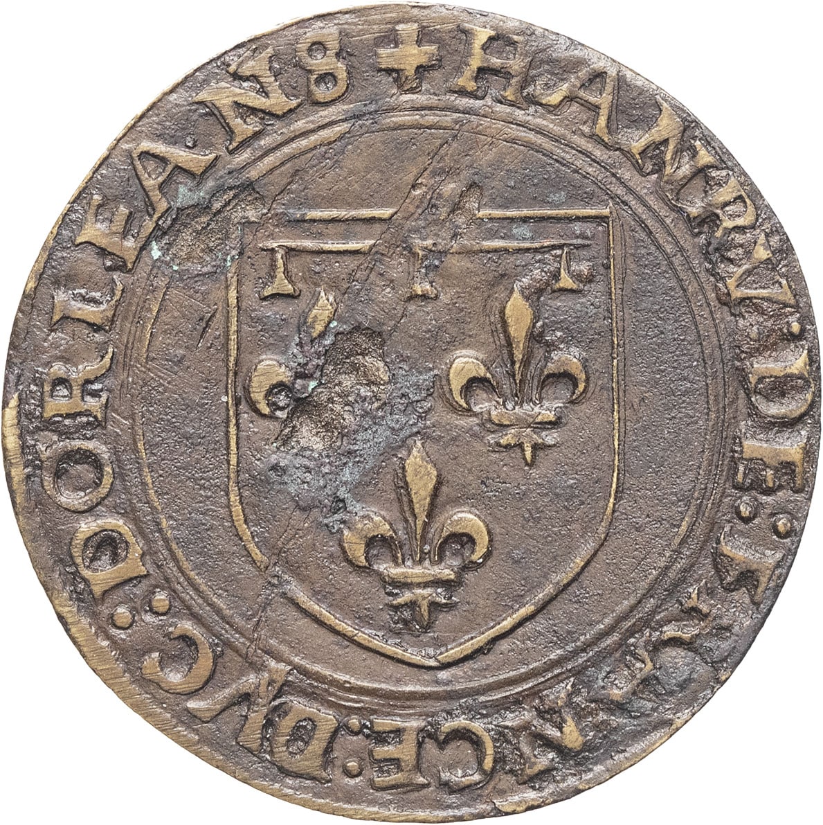 Avec son frère Henri duc d’Orléans, futur Henri II. Quelques concrétions grattées à l’avers et éclatées au revers. TTB.