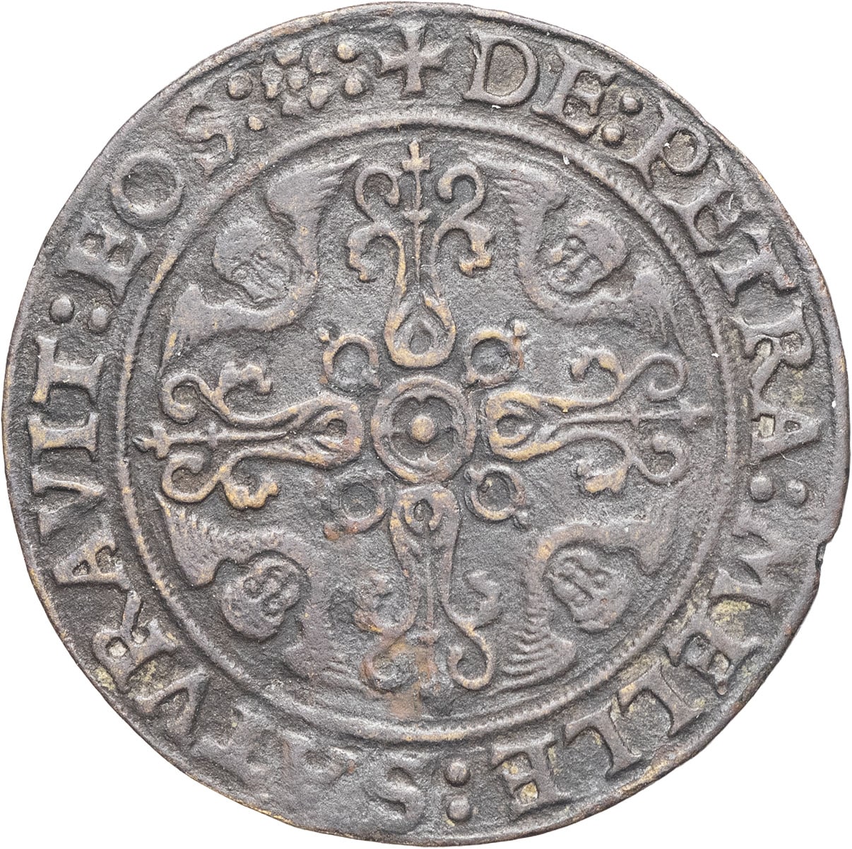 Inédit jusqu’à sa publication par Laurent Ubaud. La légende du revers, DE PETRA MELLE SATVRAVIT EOS (il les a rassasiés du miel qui coule de la pierre), est tirée de Psaumes I, LXXX, 14. TTB.