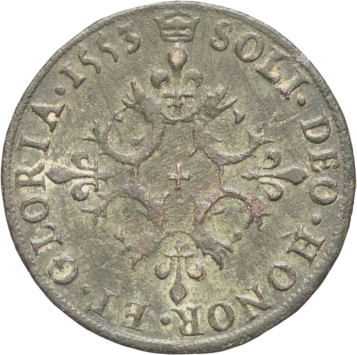 - FRANCE / ROYAL Henri II (1547-1559). Jeton à la croix formée de quatre dauphins et de quatre lis 1553.