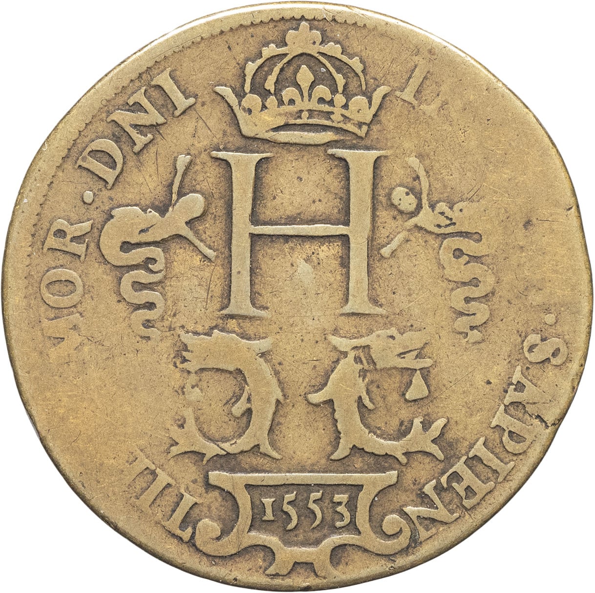 - FRANCE / ROYAL Henri II (1547-1559). Jeton au H couronné au-dessus de deux dauphins adossés 1553.