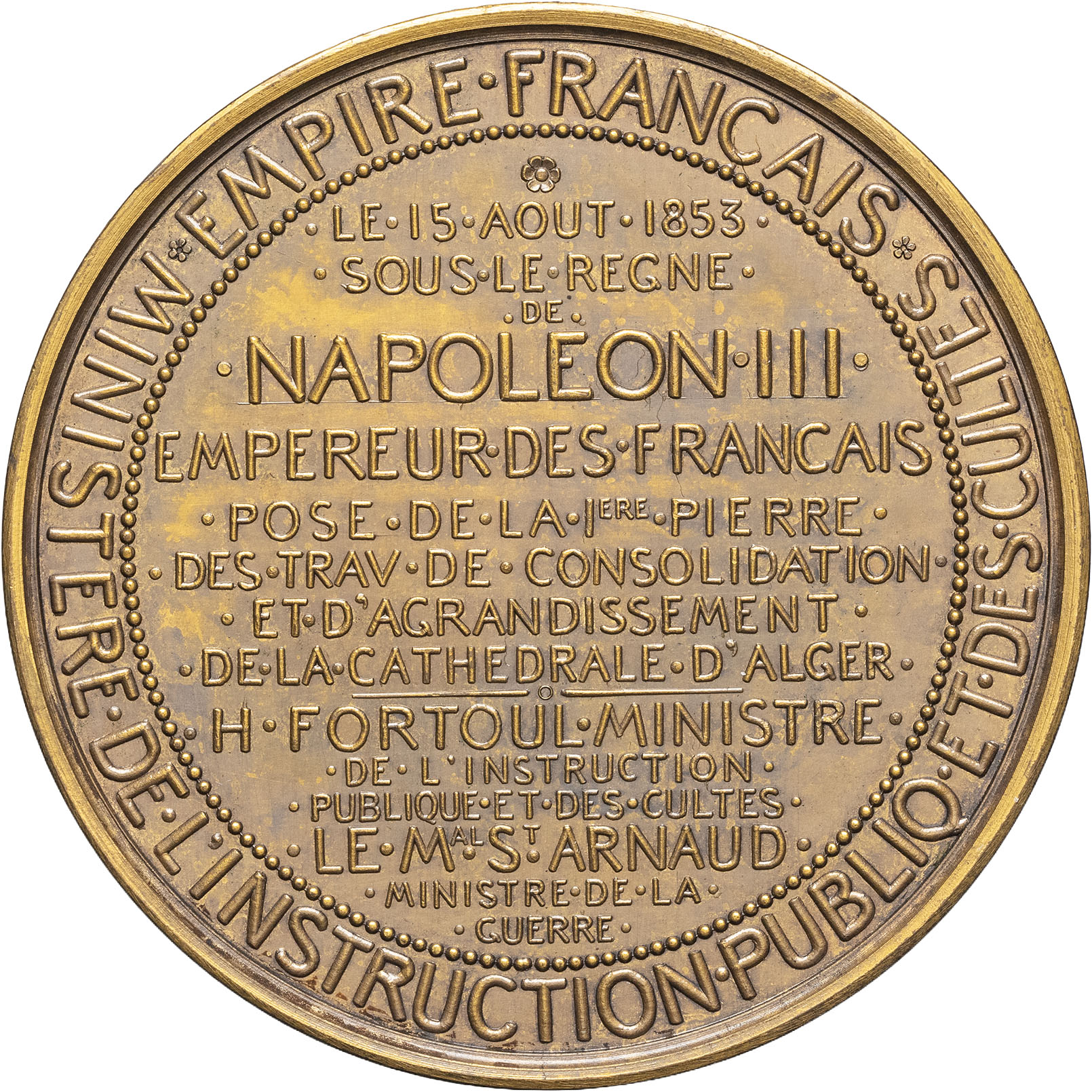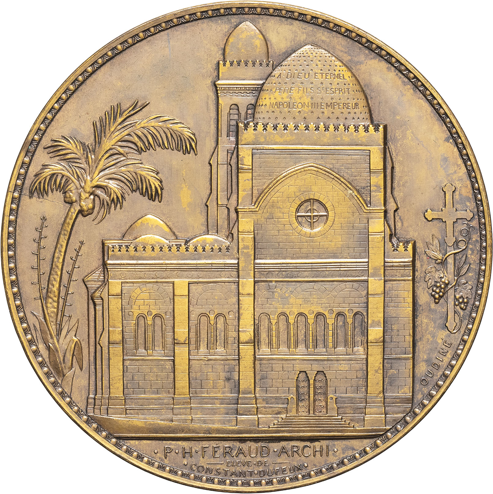 - ALGERIA MÉDAILLES - Algérie. Médaille, agrandissement de la Cathédrale d’Alger, par Oudiné 1853 (refrappe), Paris.