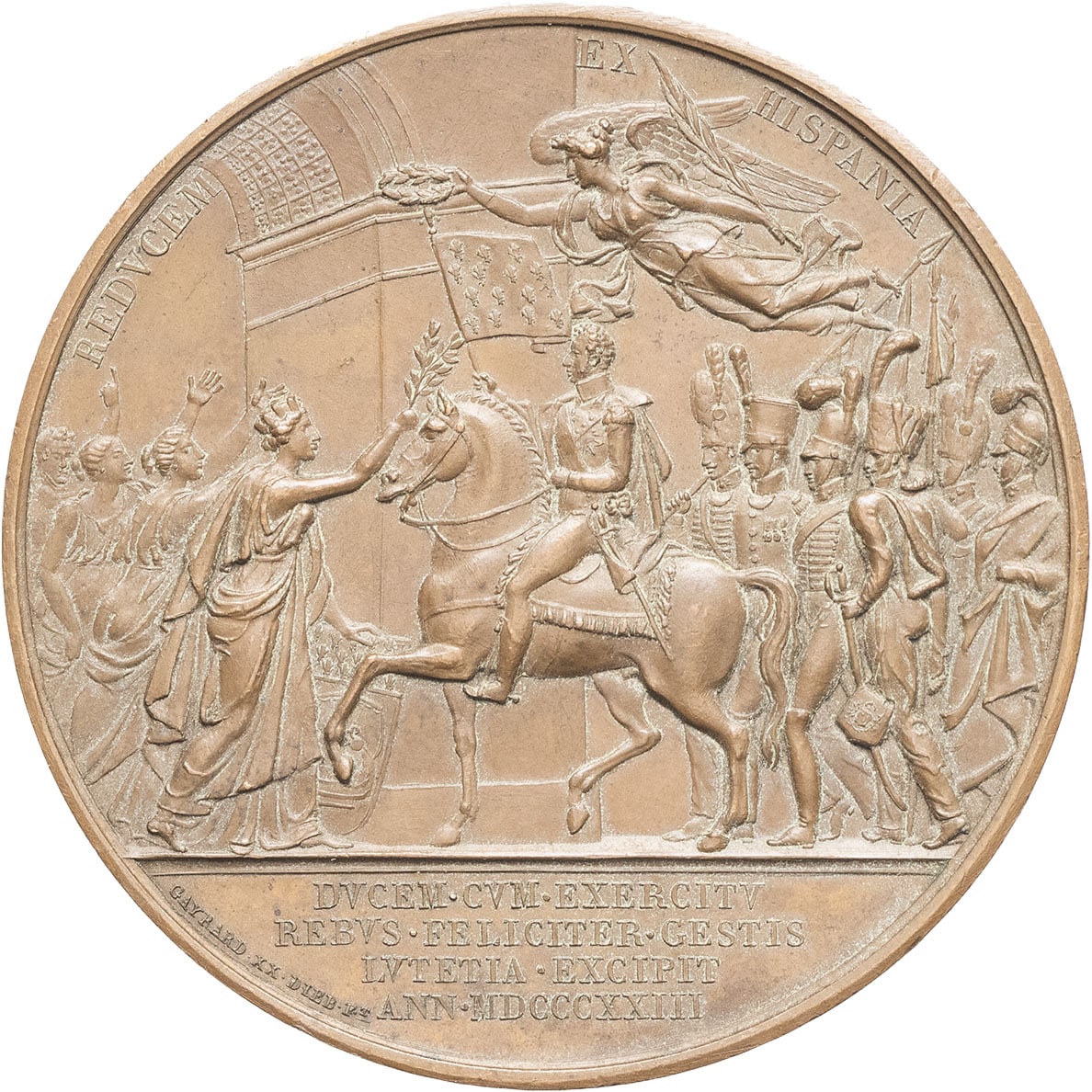 MÉDAILLES - France, Louis XVIII (1814-1824). Médaille, triomphe du duc d’Angoulême après la bataille du Trocadéro, par Andrieu et Gayrard 1823, Paris.