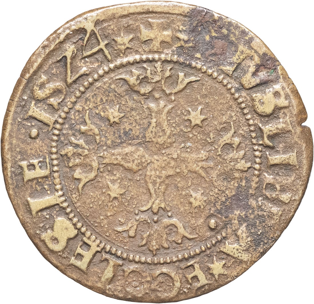 - FRANCE / FEUDAL Dauphiné, méreaux ecclésiastiques. Jeton, livre de l’église de Saint-Sévère de Vienne 1524.